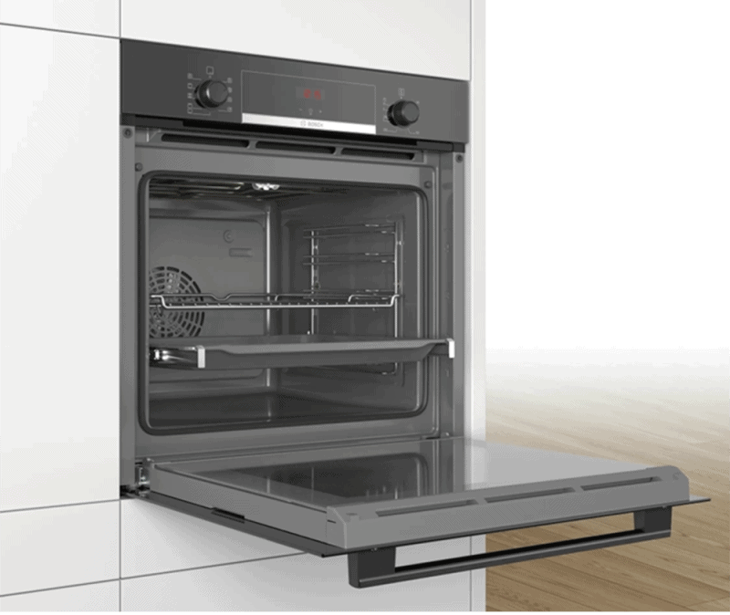 - Lò nướng Bosch HBA534EB0 Seri 4 tích hợp khí nóng 3D: giúp nướng hoàn hảo, khí nóng sẽ được luân chuyển 3 chiều đem đến sản phẩm đạt chuẩn chất lượng tối đa, chín đều giòn tan bên ngoài.
