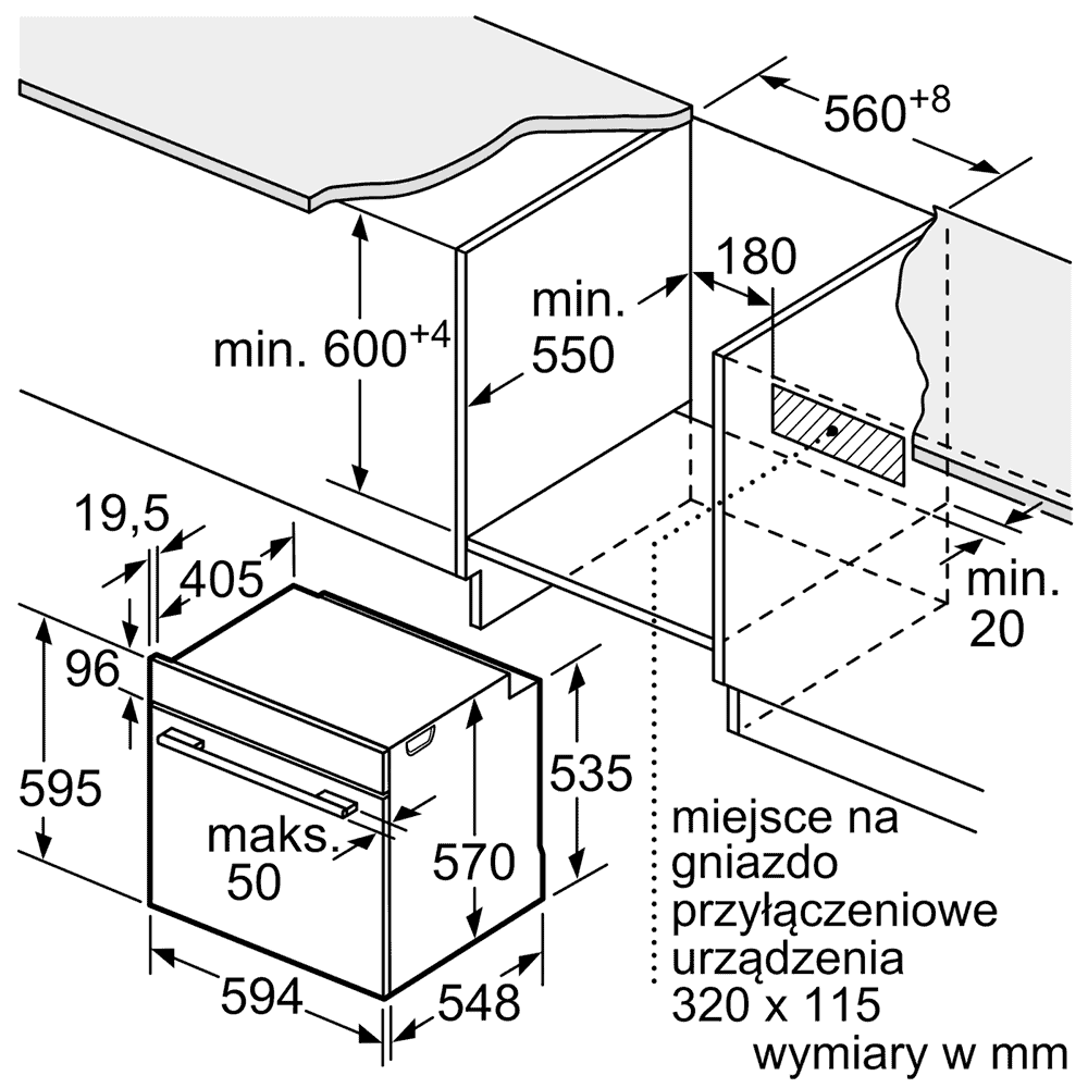 | Kích thước ô chờ mm | 560 – 568 x 585- 595 x 550 |