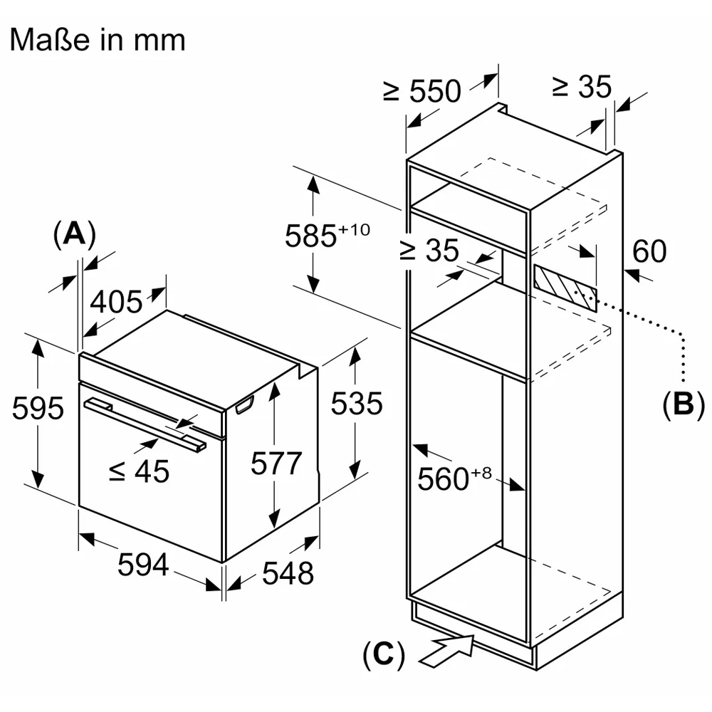 Kích thước lắp đặt lò nướng kết hợp vi sóng Bosch HNG978QB1