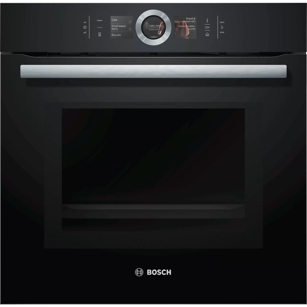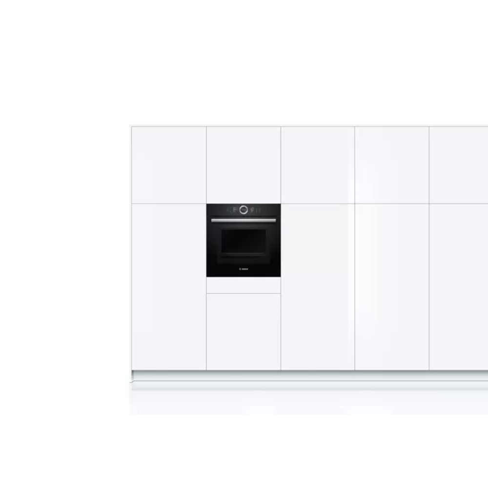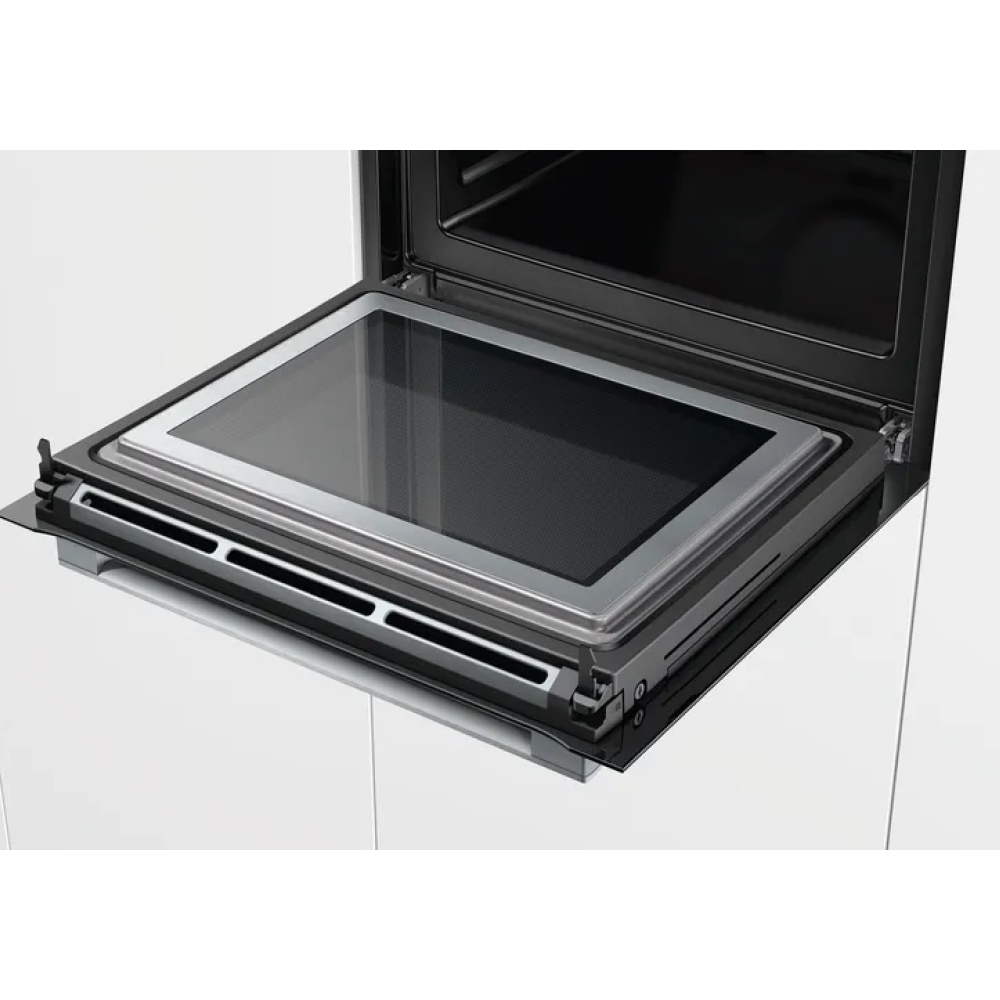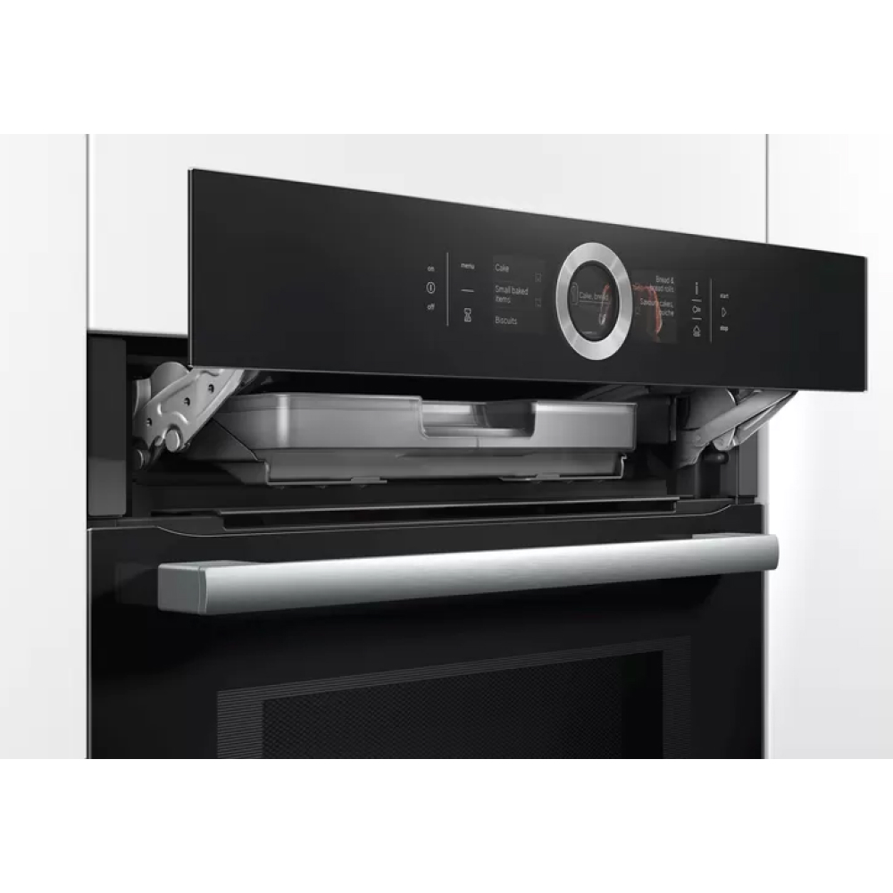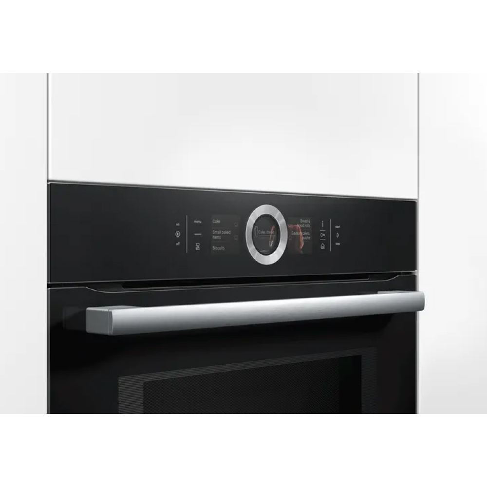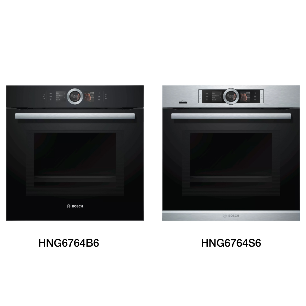 Lò nướng kèm hấp, vi sóng Bosch HNG6764 Serie 8 vẻ ngoài cao cấp, tinh tế, có 2 phiên bản là màu đen thanh lịch và thép không gỉ bóng bẩy thời thượng góp phần nâng tầm thiết kế nội thất của gian bếp gia đình.