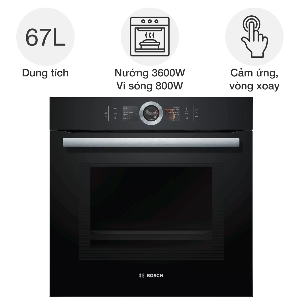 Thông số kỹ thuật và tổng quan của sản phẩm lò nướng kèm hấp, vi sóng Bosch HNG6764 Serie 8 âm tủ