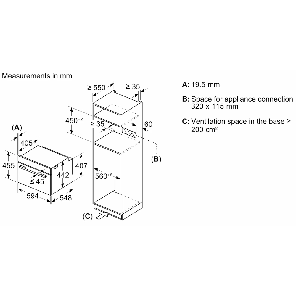 Kích thước lắp đặt lò nướng kết hợp vi sóng Bosch CMG9361B1