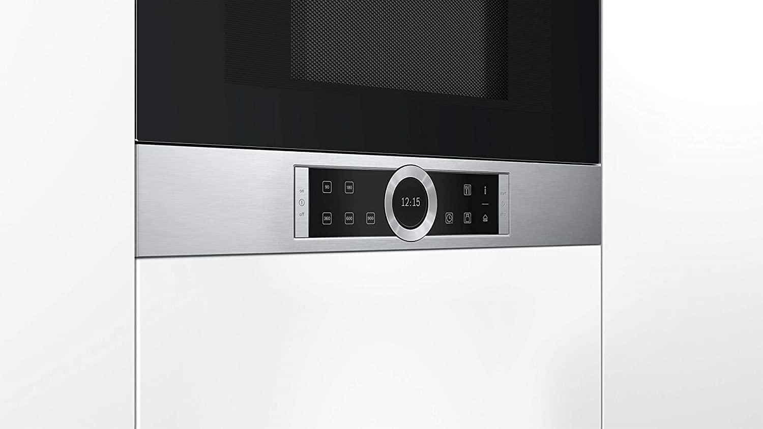 Hệ thống bảng điều khiển cảm ứng của lò vi sóng Bosch BFL634GS1 cao cấp thể hiện qua màn hình đồng hồ điện tử. Các thông số như mức công suất vi sóng, chức năng tự động, khối lượng, thời gian theo dõi cụ thể chính xác nhất.