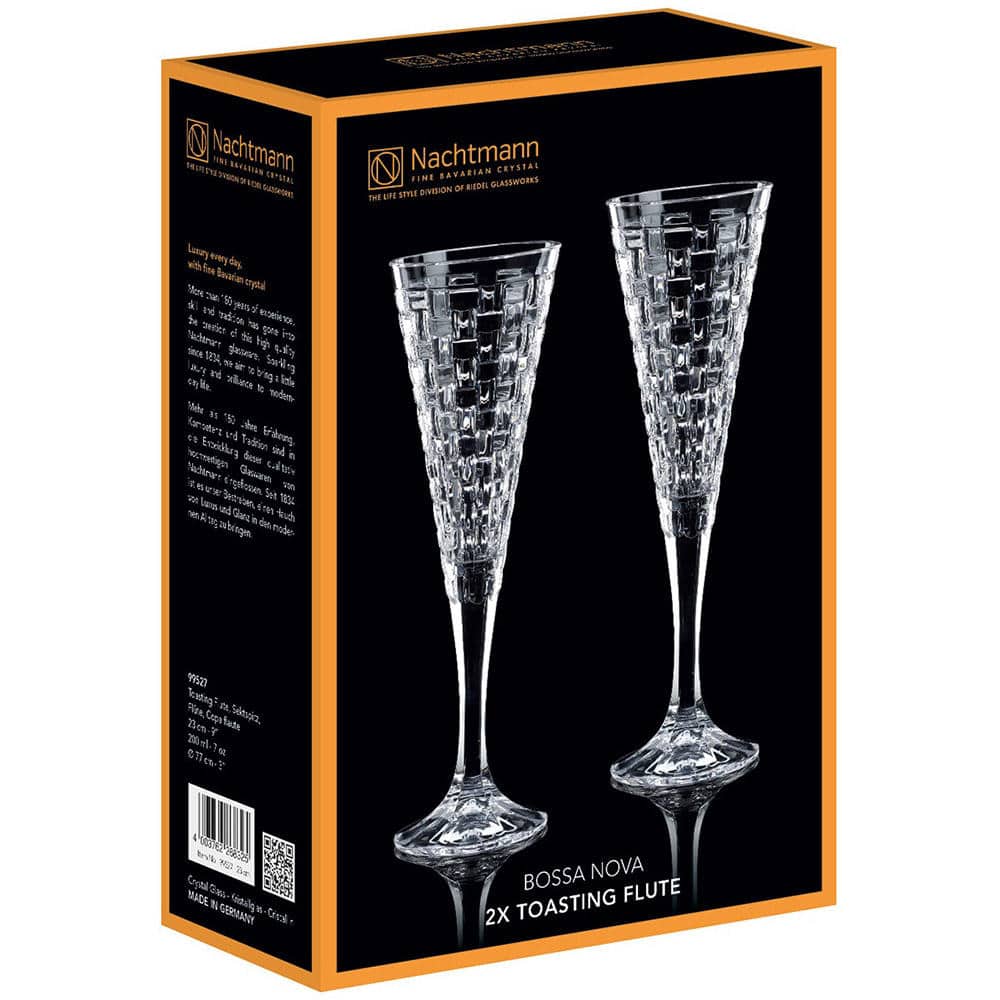 Nachtmann với dòng Bossa Nova. Dòng Bossa Nova của Nachtmann cung cấp bộ đồ uống với cảm giác mát mẻ giống như điệu nhảy mà nó được đặt tên. Bộ sưu tập Bossa Nova sẽ làm tăng thêm sự thú vị cho bộ sưu tập pha lê trong suốt của bạn với thiết kế hình đan rổ có họa tiết quyến rũ khi các đầu ngón tay chạm vào.