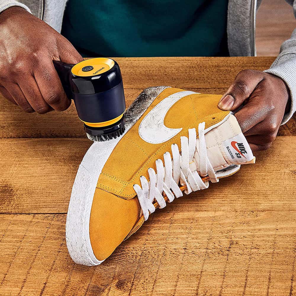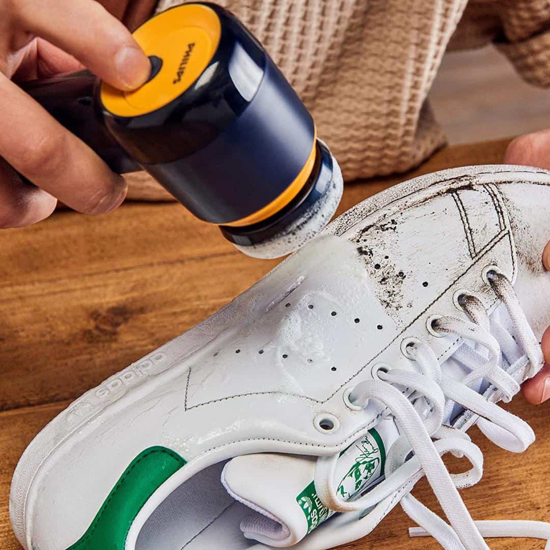 - Dễ dàng sử dụng trong ba bước: Chỉ cần làm ẩm bàn chải với xà phòng và nước, bật Philips Sneaker Cleaner và lau giày sneaker bằng khăn sạch sau khi làm sạch
