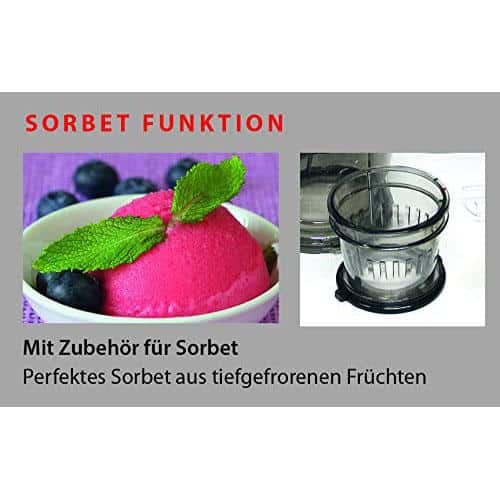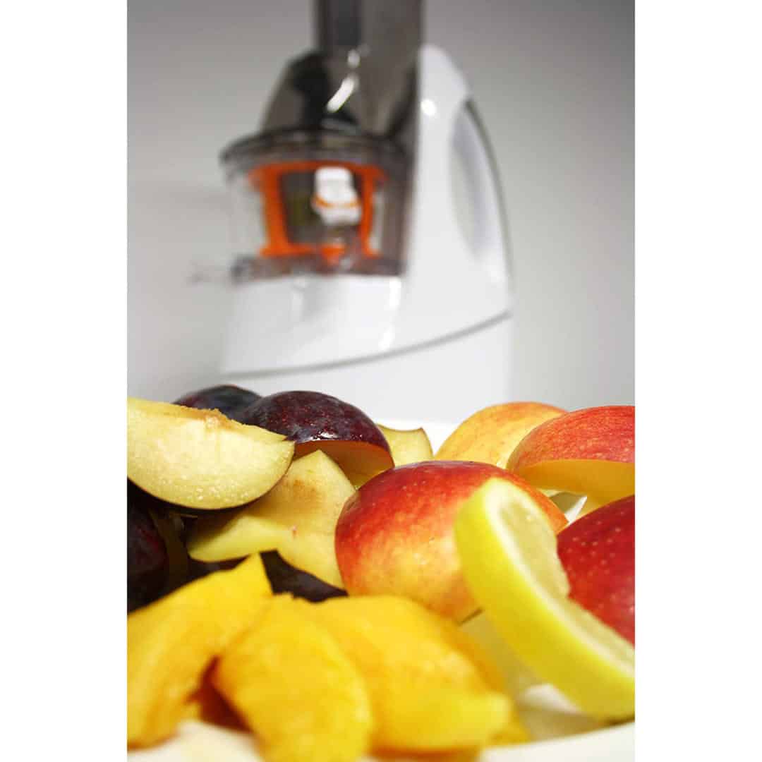 - Ép trái cây nhẹ nhàng nhờ vào RPM thấp hơn (50-60 vòng / phút)
