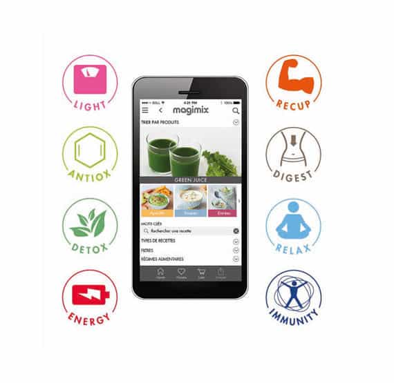 - Phụ kiện Juice System được thiết kế đặc biệt để ép các loại trái cây và rau quả cứng (táo, cà rốt,…) và rau xanh (bắp cải, cần tây,…), Bộ lọc nước ép là công nghệ được cấp bằng sáng chế của Magimix, nó cho phép bạn tạo nên những ly nước ép trái cây tinh khiết nhất.