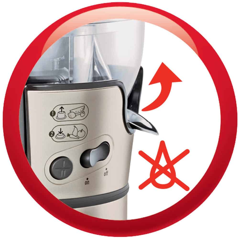 Moulinex Elea Duo JU385H với thiết kế vòi chống nhỏ giọt thông minh cũng giúp nhà bếp của bạn sạch sẽ và gọn gàng hơn khi nước trái cây sẽ được giữ trong cốc không có nguy cơ nhỏ vương vãi ra bàn bếp.
