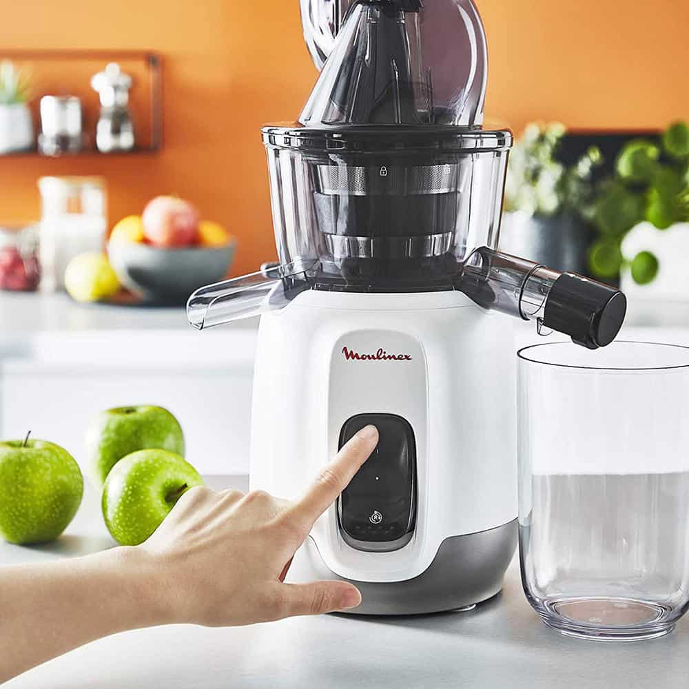 Với máy ép chậm Moulinex bạn có thể dễ dàng ép một ly nước trái cây, rau củ với đầy đủ và giữ vẹn nguyên được dưỡng chất. Ưu điểm nổi trội nhất của máy ép chậm so với các máy ép thông thường là máy không tạo ra tiếng ồn lớn khi hoạt động, lại tạo ra nước ép thành phẩm đậm đặc hơn, nhiều hơn, ép nhanh và đặc biệt là bảo toàn dưỡng chất hơn.
