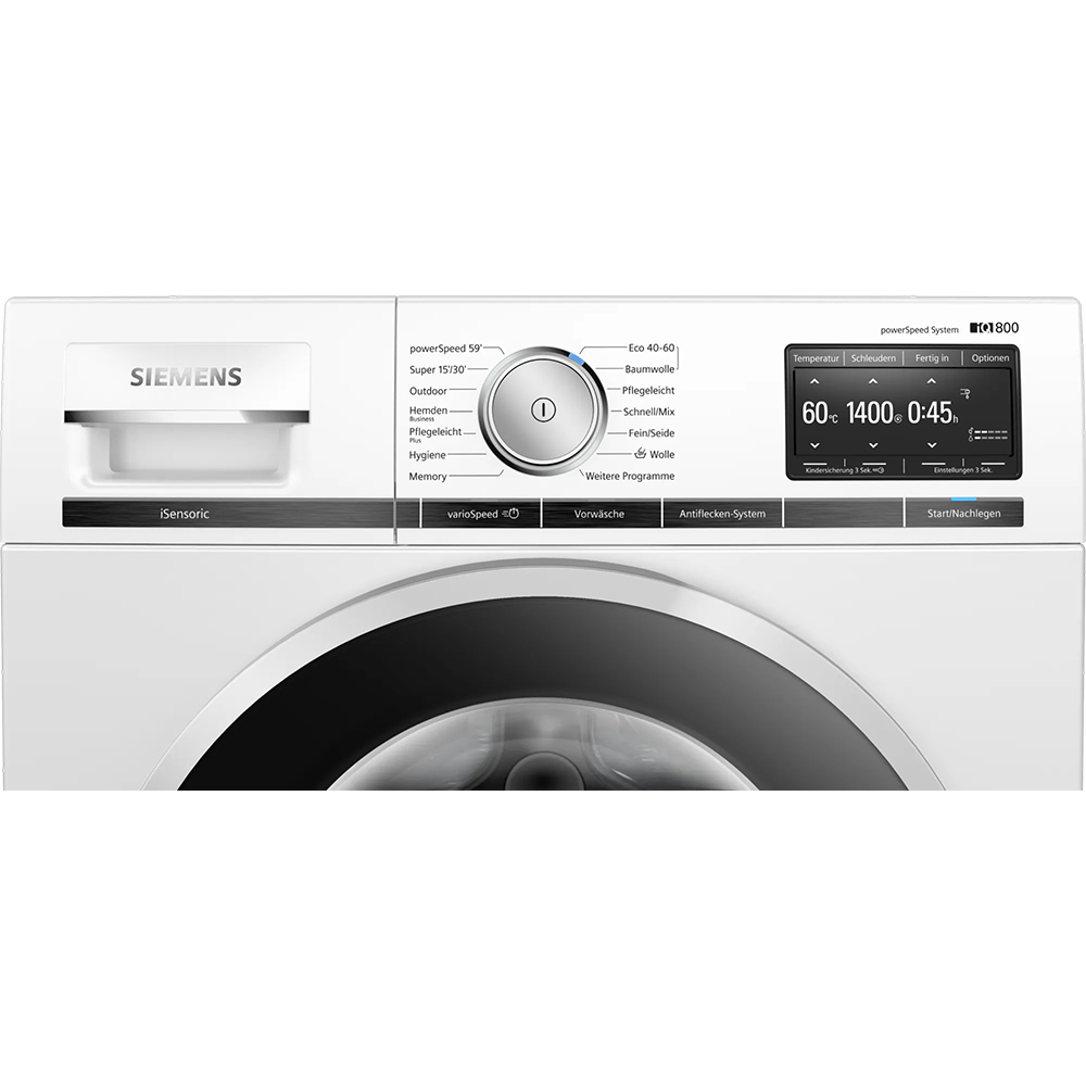 Toàn bộ quá trình chọn lựa chương trình giặt, các tùy chọn hay việc cài đặt các thông số trong quá trình sử dụng đều được thực hiện cực kỳ nhanh chóng thông qua bảng điều khiển trực quan. Máy Giặt Siemens iQ800 WM14VG44 kết hợp hiển thị thông tin trên màn hình TFT độ phân giải cao kết hợp với núm xoay chọn chương trình cự kỳ tinh tế.