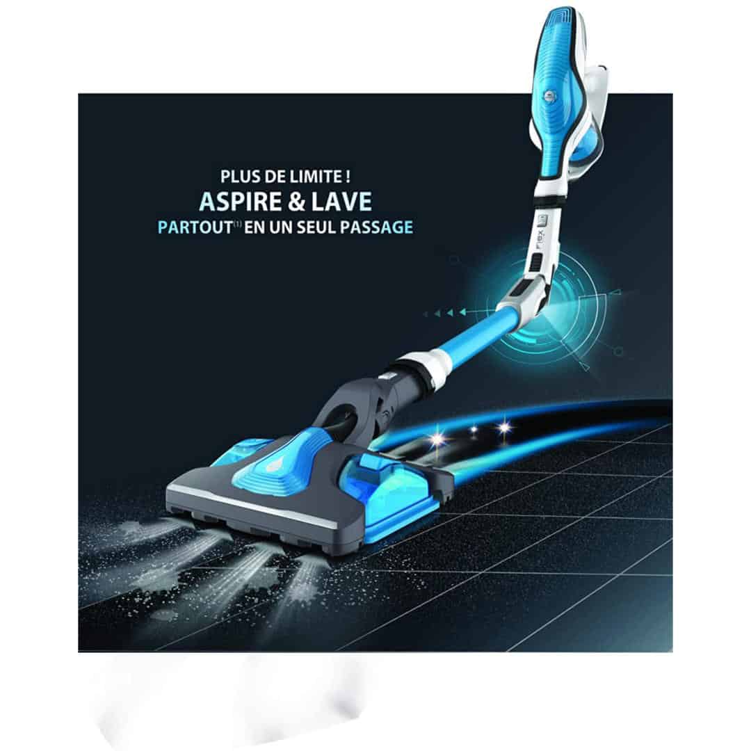 Máy Hút Bụi Cầm Tay Rowenta RH9490 Air Force 560 Flex Aqua nâng hiệu suất hút lên một tầm cao mới. Tất cả công nghệ tiên tiến này của máy hút bụi mới bao gồm thiết kế sáng tạo của nó, có thể hút bụi dưới đồ nội thất nhiều hơn gấp 5 lần để làm sạch dễ dàng. Kết hợp với công suất hút lên đến 100 Air Watt, bạn có thể tận hưởng các phiên làm sạch không bị giới hạn. Hút sạch bụi từ mọi ngóc ngách trong ngôi nhà của bạn nhanh hơn bao giờ hết. Ngoài ra, máy hút bụi đi kèm với một đầu sẽ cho phép bạn hút bụi và làm sạch cùng một lúc: phụ kiện lý tưởng để tiết kiệm thời gian mỗi ngày. Một chuyển động tới lui đơn giản là đủ để hút bụi và làm sạch dễ dàng, ngay cả những ngóc ngách khó tiếp cận, nhờ thiết kế thông minh và hiệu suất hàng đầu.