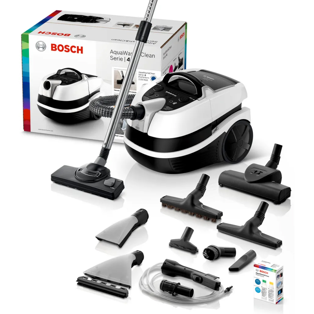 Máy hút bụi dạng hộp Bosch BWD421PRO Serie 4 không chỉ có khả năng hút bụi, mà còn có thể hỗ trợ người dùng giặt được thảm và giường nệm với các phụ kiện đặc biệt đi kèm.