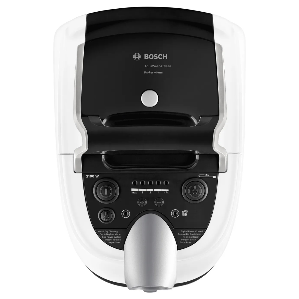 Máy hút bụi dạng hộp Bosch sử dụng công nghệ AquaWash&Clean, có khả năng giặt ướt và hút chất lỏng trên toàn bộ mặt thảm và mặt sàn, từ đó giúp tiết kiệm thời gian vệ sinh nhà cửa cho người dùng.