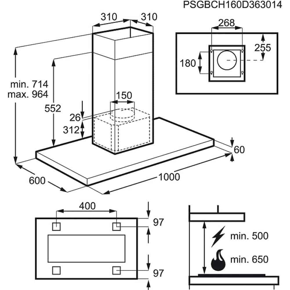 Kích thước máy hút mùi đảo AEG DIB5160HM 100cm