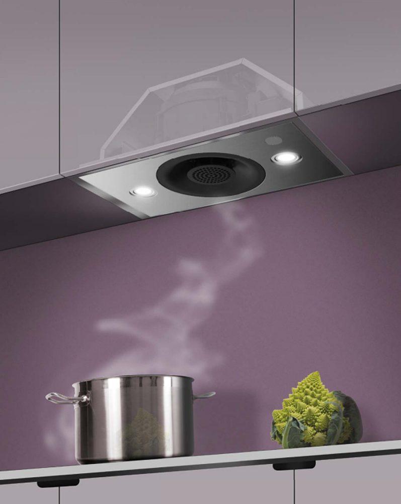 Công nghệ INVVIFLOW ngăn ngừa nước ngưng tụ một cách hiệu quả trên bề mặt của máy hút mùi cũng được Caso trang bị trên máy hút mùi quạt Caso LB Cabinet 01S.
