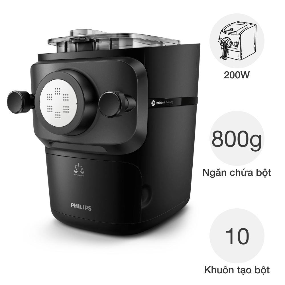 • Công suất mạnh mẽ 200 W giúp nhào bột và làm mì nhanh chóng, tiết kiệm thời gian