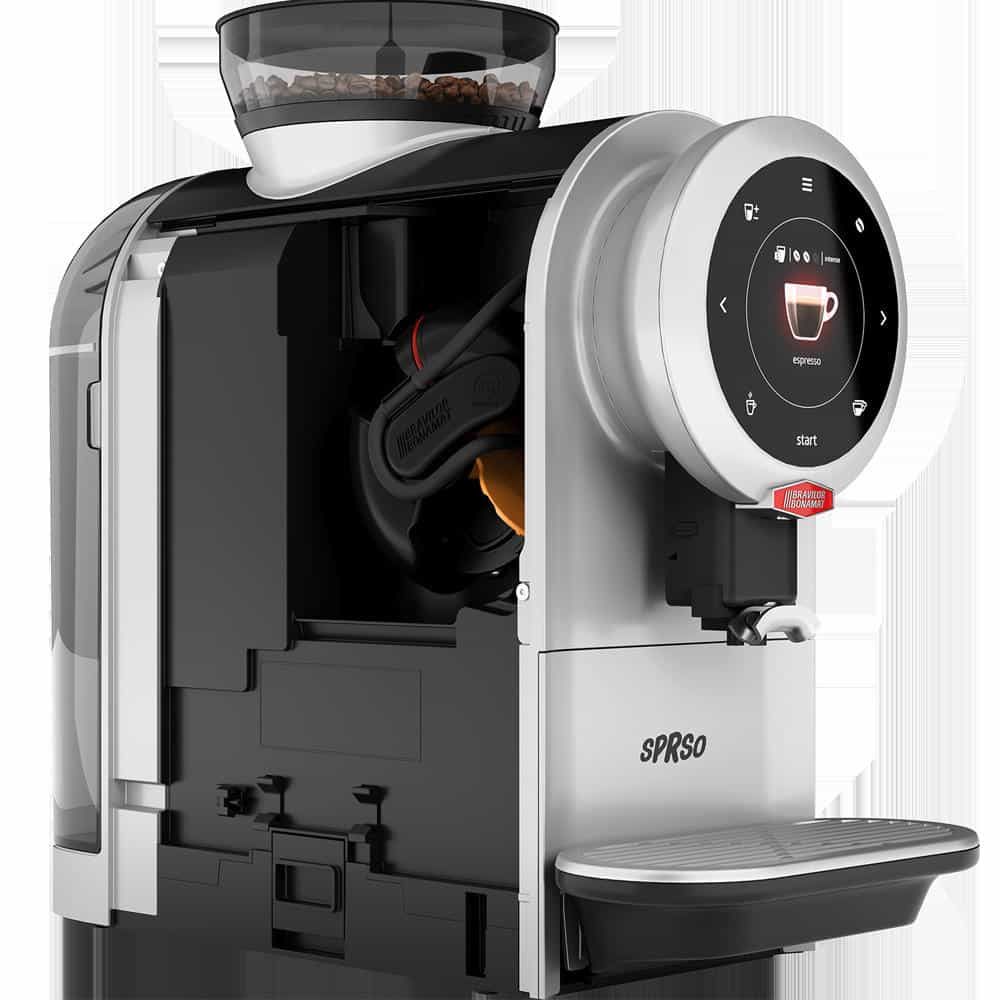 Máy pha cà phê tự động Bravilor Sprso dùng được ở cả những nơi có và không có kết nối nước cấp. Bravilor Sprso Được trang bị màn hình cảm ứng trực quan gồm 14 loại đồ uống được lập trình sẵn, cối xay có đĩa bằng thép không gỉ và hệ thống pha CIRCO dễ chăm sóc