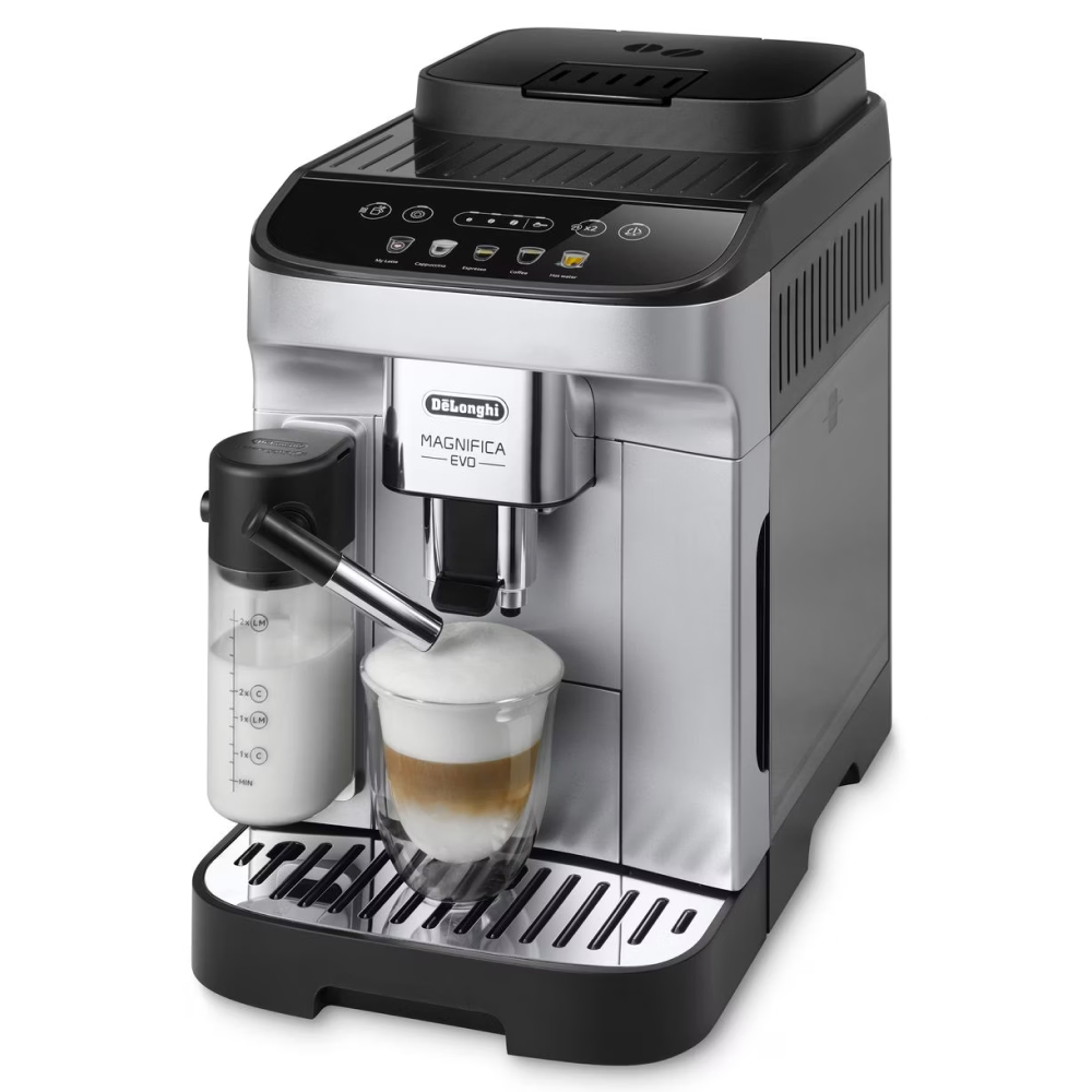 Máy pha cà phê tự động De’Longhi ECAM290.61 Magnifica Evo sở hữu thiết kế hiện đại, tinh tế, có khả năng pha chế nên cốc Espresso chuẩn vị Ý và 4 công thức đồ uống hấp dẫn khác chỉ bằng thao tác chạm nhẹ trên màn hình điều khiển trực quan. Ứng dụng công nghệ LatteCrema Hot cho bạn được tận hưởng kem sữa đậm đặc, mịn màng và thơm ngon khó cưỡng.