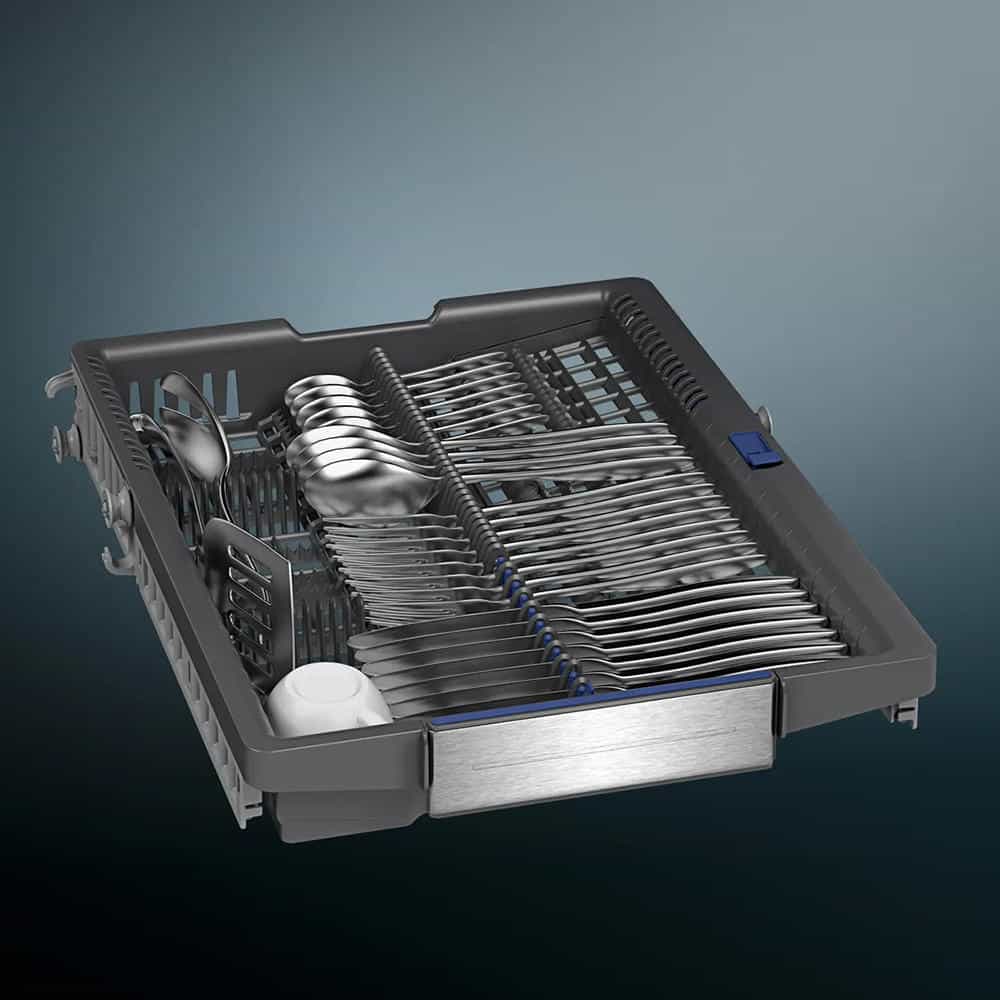 Với cơ chế rackMatic giúp việc sắp xếp các dụng cụ dễ dàng hơn, đặc biệt là với các loại nồi hoặc đĩa lớn. Giỏ trên của máy rửa chén Siemens iQ500 SR45ZS11ME có thể điều chỉnh độ cao một cách dễ dàng theo ba cấp độ để thích ứng với yêu cầu không gian riêng.