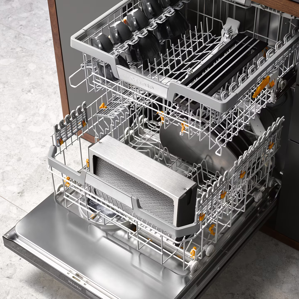 | Tiện ích | – Đèn báo trạng thái hoạt động – Hẹn giờ khởi động lên đến 24 giờ – Công nghệ EcoPower tiết kiệm điện và nước – Hiển thị thời gian còn lại – Haflload cảm biến khối lượng bát đĩa – Rửa nửa tải – Kệ gấp linh hoạt FlexAssist – Bản lề cửa êm ái ComfortClose – Kệ gấp XL-Assist tối ưu không gian cho các vật dụng lớn – Giàn rửa dao kéo 3D MultiFlex – Hệ thống giỏ rửa ExtraComfort – Điều khiển và kiểm soát từ xa qua Miele@home – Tự động hé cửa sau khi kết thúc chương trình rửa AutoOpen |
