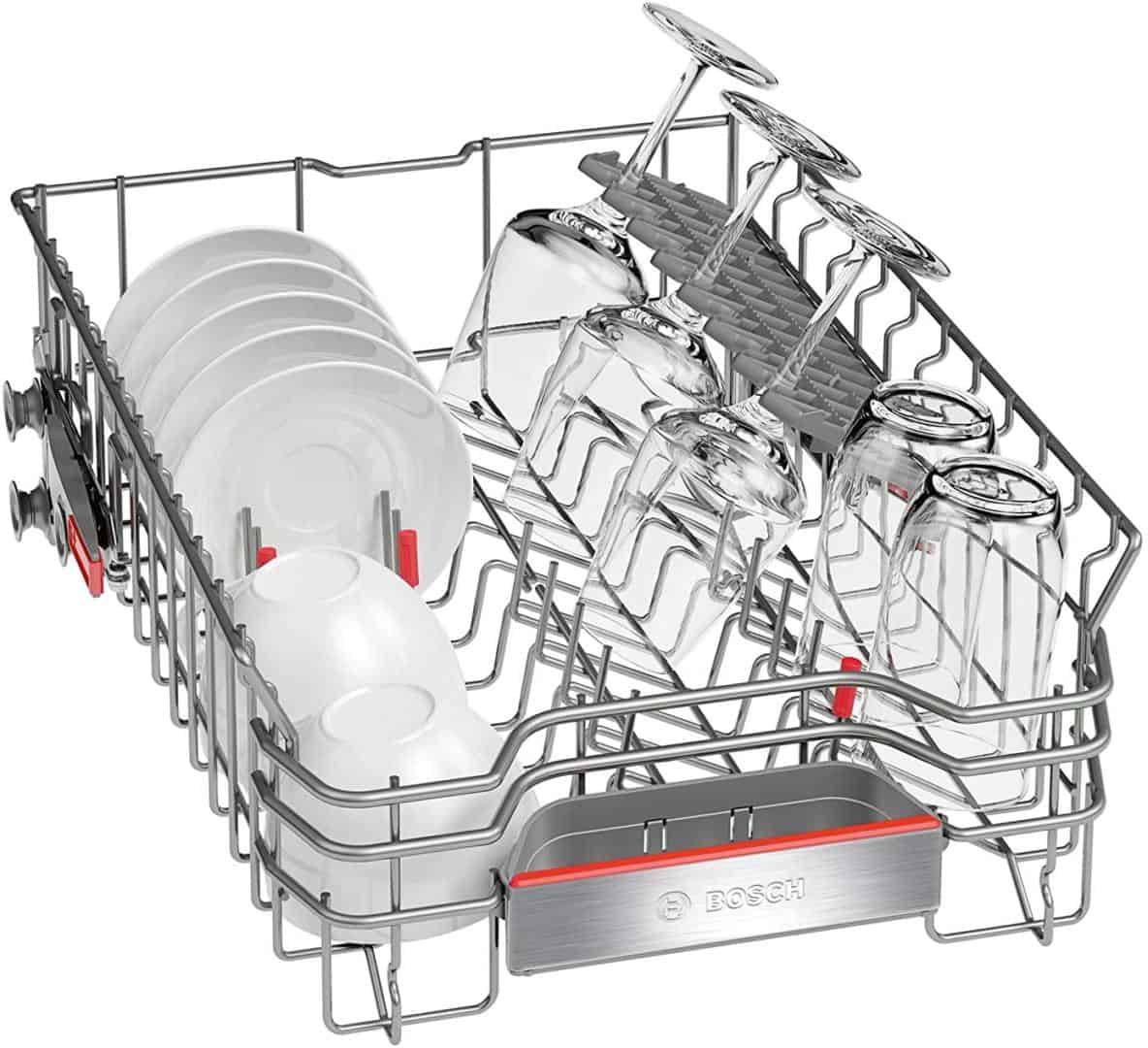 Với giá đỡ ly thiết kế riêng biệt, Máy Rửa Chén Bát Bosch SPS66TW01E Series 6 cho phép bạn sắp xếp và lưu trữ an toàn các loại ly cao, chai lọ có kích thước đặc biệt trong giỏ phía dưới. Điều này giúp bảo vệ hiệu quả đồ thuỷ tinh mỏng manh, phòng tránh rủi ro vỡ hỏng trong quá trình rửa.