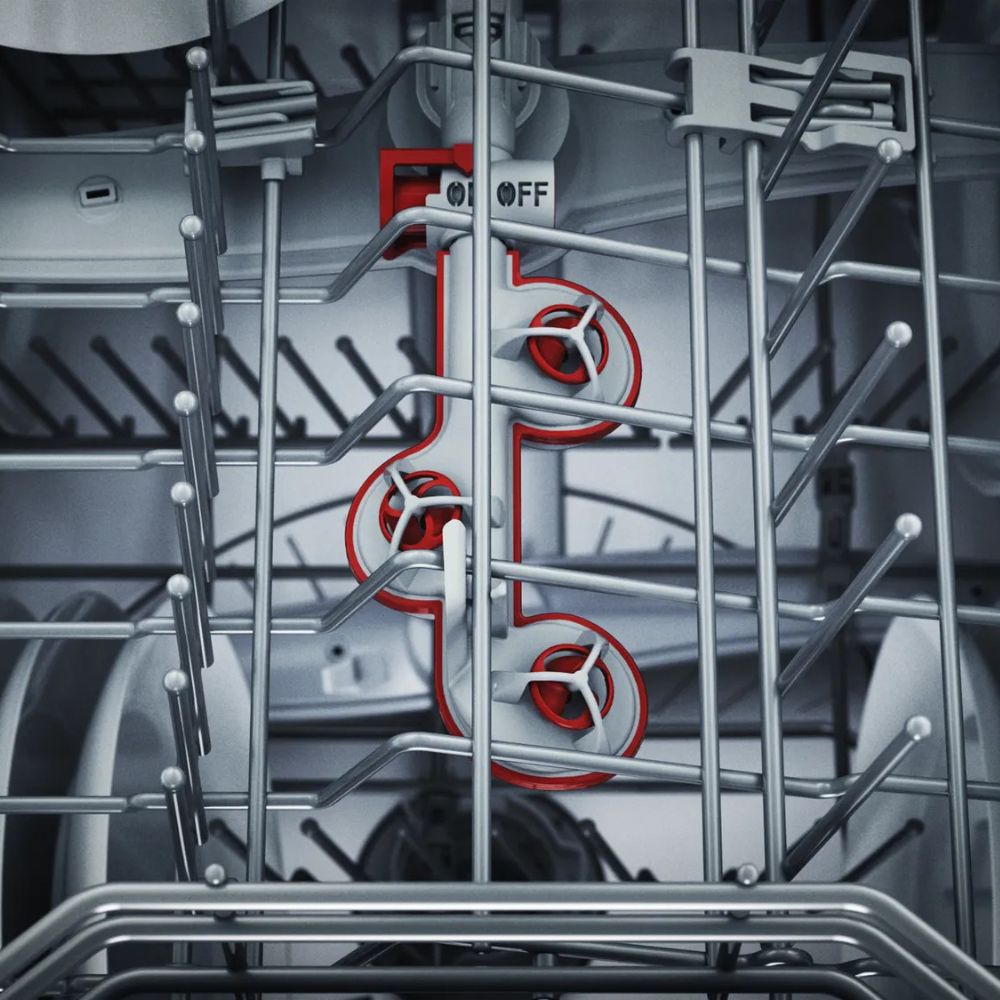 Vùng Extra Clean Zone với ba vòi nước xoáy làm giúp làm sạch nhanh chóng chén đĩa bị bám dính cặn thức ăn mà không cần thêm viên rửa hoặc tăng nhiệt độ, hạn chế tối đa ảnh hưởng đến các đồ dùng khác đang cùng được vệ sinh trong chu trình rửa. Chỉ cần đặt những đồ dùng cần làm sạch kĩ vào vùng Extra Clean Zone, kích hoạt chương trình rửa, quý khách có thể hoàn toàn yên tâm về kết quả làm sạch.
