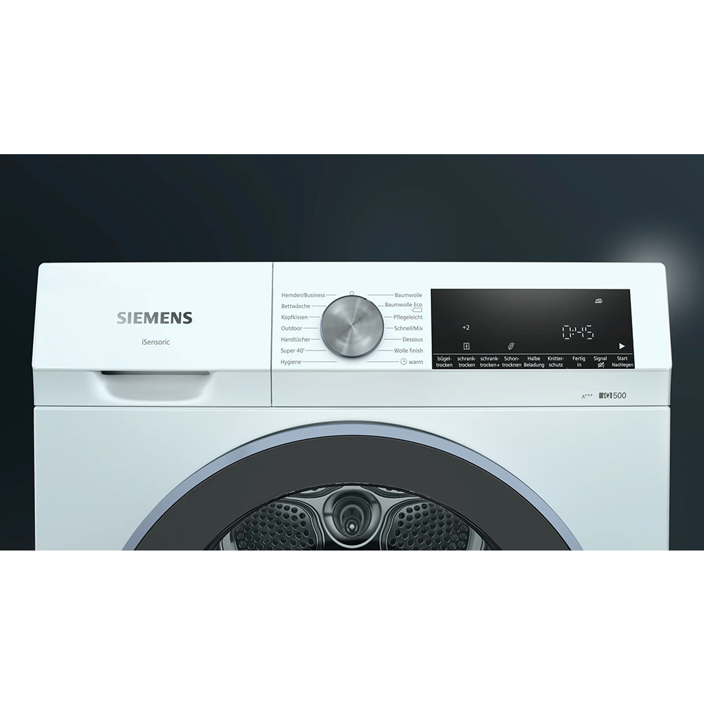 Mọi thứ luôn trong tầm nhìn với việc trang bị đèn LED chiếu sáng lồng sấy trên máy sấy bơm nhiệt Siemens iQ500 WQ33G2DG0. LED được kích hoạt khi thiết bị được bật, sau khi cửa được mở và đóng và khi chương trình sấy khô bắt đầu. Hệ thống chiếu sáng sau đó sẽ tự động tắt để tiết kiệm năng lượng.