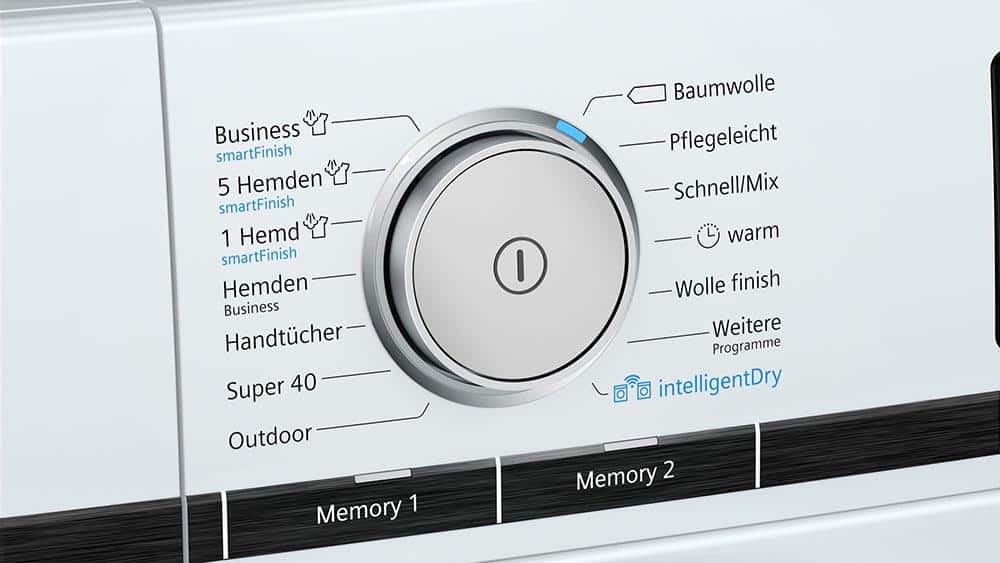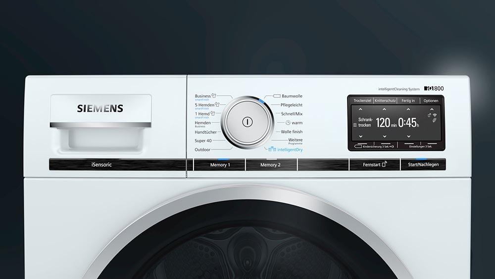 Với intelligentDry, bạn không còn phải lo lắng về việc phải lựa chọn chương trình sấy phù hợp. Máy sấy quần áo và máy giặt cùng là Siemens của bạn sẽ chọn cài đặt lý tưởng cho bạn. Máy giặt được nối mạng sẽ gửi tất cả thông tin liên quan từ chương trình giặt cuối cùng, chẳng hạn như kích thước tải và mức độ ẩm, trực tiếp đến máy sấy thông qua Home Connect. Do vậy chương trình được phối hợp hoàn hảo và tính toán chính xác thời gian sấy dự kiến.