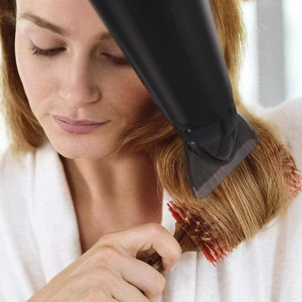 Thành phần gốm phát ra nhiệt hồng ngoại xa, có hơi nóng hơi nhẹ nhàng giúp sấy khô tóc ở giữa và bảo vệ tóc không bị sấy quá mức, nhưng không làm ảnh hưởng đến tốc độ và hiệu quả.