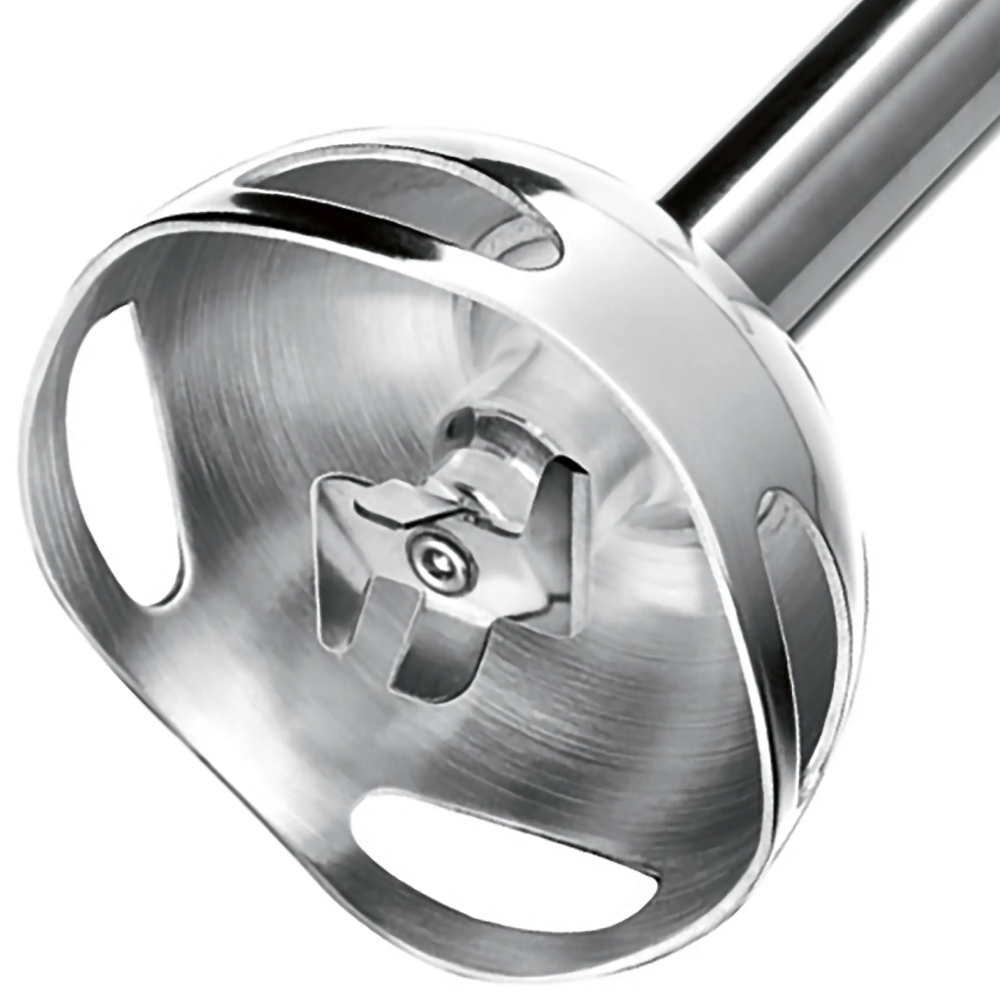 | Tiện ích | – 12 tốc độ xay cùng chế độ turbo mạnh mẽ – Thiết kế tay cầm công thái học thoải mái – Công nghệ xay QuattroBlade với lưỡi dao 4 cánh sắc bén, chống văng – Động cơ hoạt động êm ái, độ rung thấp – Cơ chế Eject-/ Click-Mechanism tháo lắp phụ kiện nhẹ nhàng – Cốc đong có nắp đậy tiện dụng – Phụ kiện có thể tháo rời và vệ sinh an toàn trong máy rửa chén |