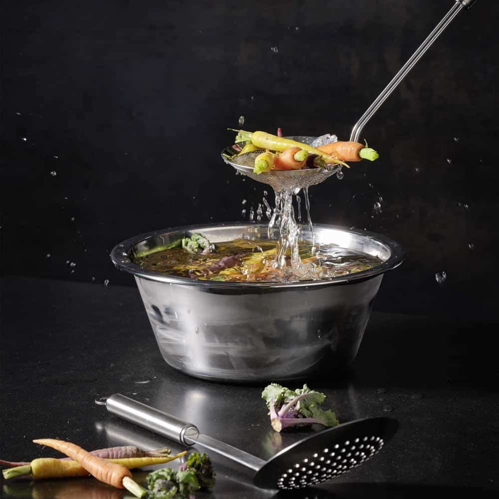 Tuyệt vời để chiên ngập dầu và chần, muôi vớt thực phẩm Roesle 95792 giúp lấy thức ăn ra khỏi nồi chiên ngập dầu hoặc nước sôi một cách nhanh chóng mà không làm trầy xước chảo của bạn. Muôi vớt Roesle 95792 hoàn hảo để xúc và giữ mì, bánh bao, bánh phồng tôm và chiên khoai tây chiên, cá,… Mắt lưới đan nhỏ tiện dụng, có vành rót bao quanh lưới