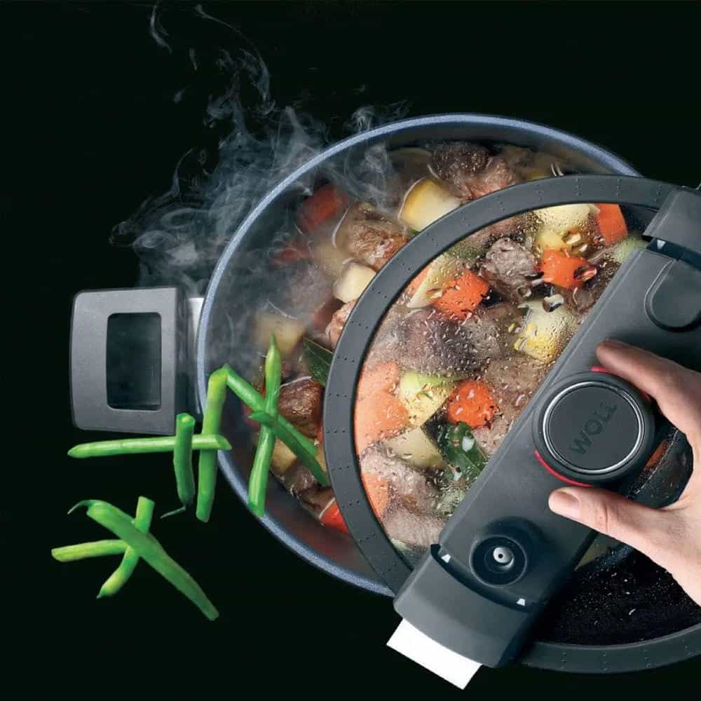 Nồi áp suất Woll 1026-2-1 DALI Diamond Active Lite có thể giảm 50% thời gian nấu so với các phương pháp nấu thông thường. Bên cạnh đó, nhờ thiết kế độc đáo, bạn có thể tháo nắp nồi áp suất bất cứ lúc nào trong khi nấu để thêm nguyên liệu và gia vị.