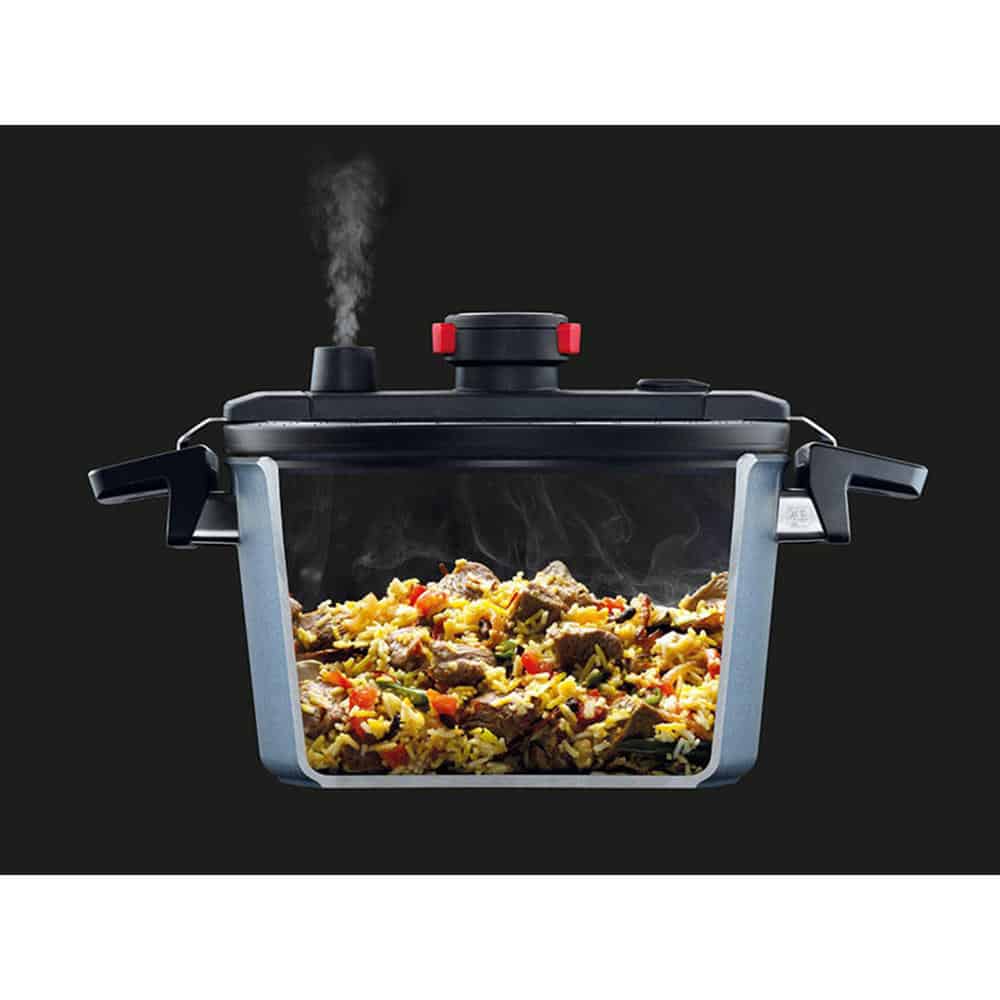 - Phần nắp vung được làm bằng kính cường lực với độ an toàn cao.