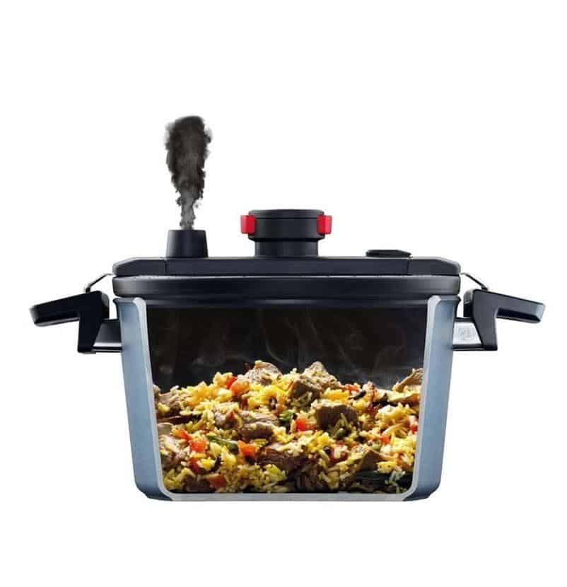 Nhờ nắp đậy đặc biệt, thực phẩm có thể được chế biến ở áp suất thấp so với nồi áp suất. Nắp đậy mang tính mang tính cách mạng này tự điều chỉnh nhiệt độ áp suất, giải phóng áp suất hơi nước dư thừa qua van xả giúp giảm 50% thời gian nấu và 70% năng lượng tiêu thụ.