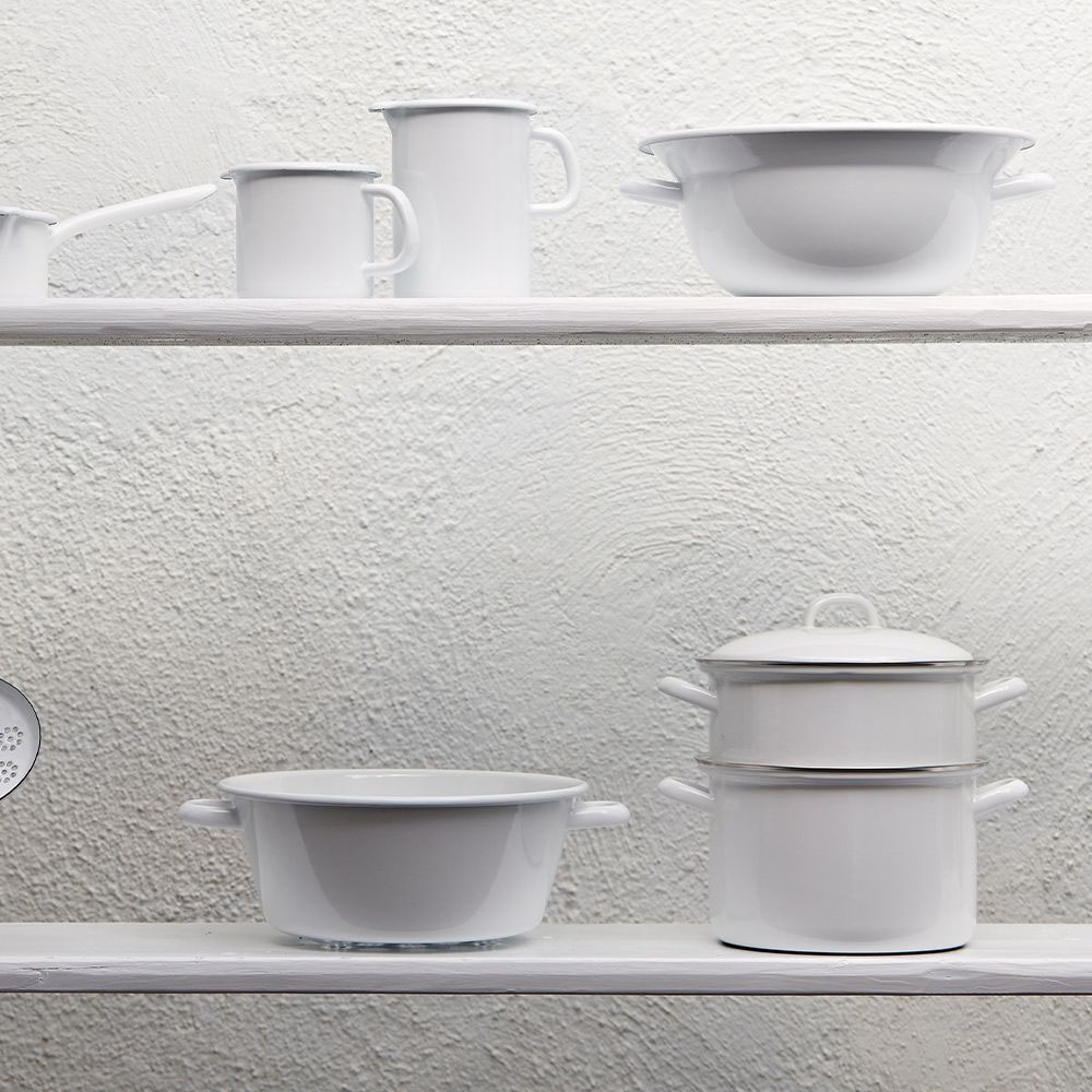 Nồi dáng cao kèm nắp Riess Weiss trắng nhiều kích thước được thiết kế với tay cầm tráng men cổ điển. Phần thiết kế nắp tương thích với nồi và bổ trợ cho việc nấu nướng với chiếc nồi này như một màn hình chỉ báo năng lượng. Ngay khi nắp bắt đầu có những tiếng kêu lạch cạch, đã đến lúc bạn nên giảm nhiệt để nấu nướng tiết kiệm năng lượng.
