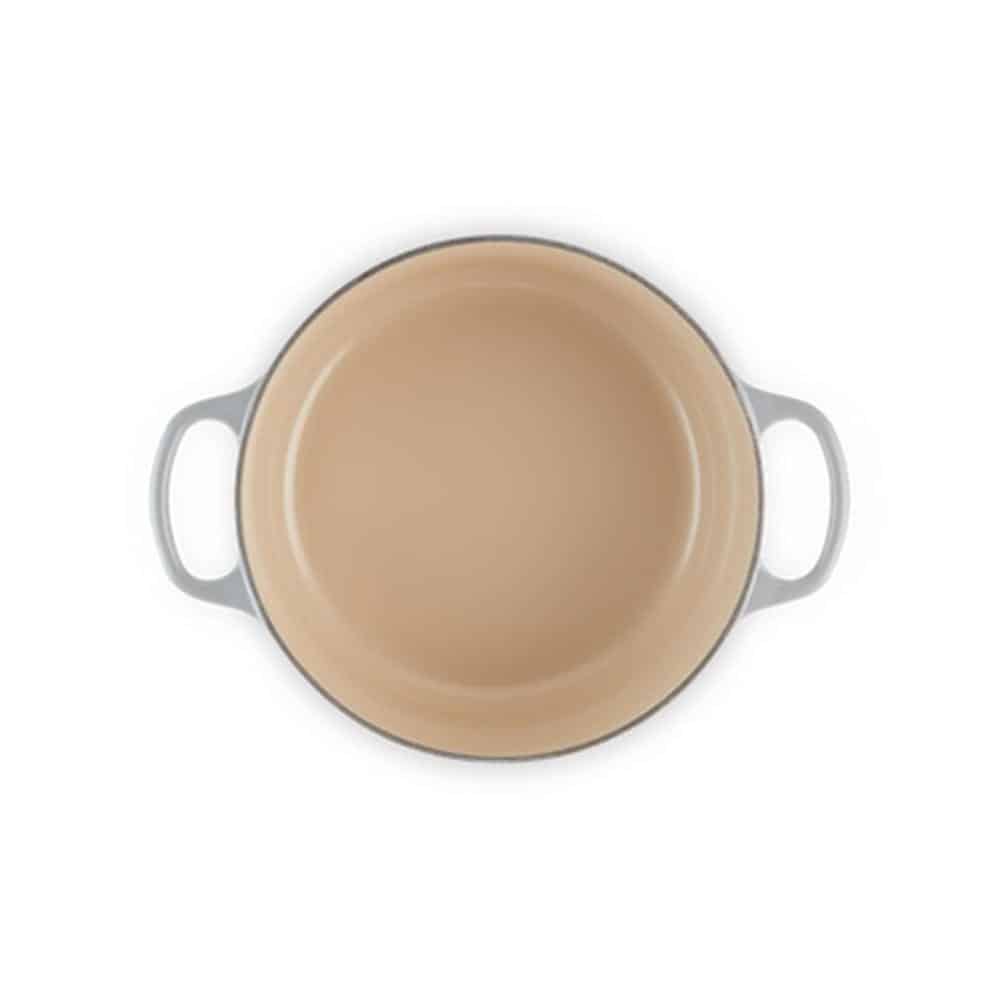 Lớp men hợp vệ sinh và chống axit. Nó thích hợp để chế biến thức ăn sống hoặc nấu chín, cũng như nấu và ướp với rượu hoặc nước cốt chanh. Nó cũng cho phép bạn bảo quản thực phẩm trong tủ lạnh hoặc tủ đông. Nồi Gang LeCreuset Evo 24cm Mist Gray được tráng men cao cấp, chống xỉn màu, ố, sứt mẻ và nứt, giúp cho việc lau chùi, vệ sinh nồi dễ dàng hơn sau khi chế biến các món ăn có nhiều gia vị. Ngoài ra, nồi được thiết kế dạng lòng chảo không có các góc cạnh giúp cho việc đảo trộn thức ăn dễ dàng hơn.