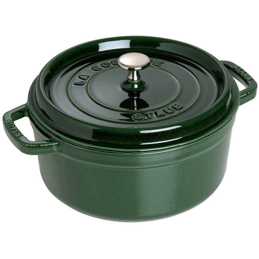 Staub Cocotte màu xanh lá cây húng quế tô điểm thêm sắc màu vào nhà bếp của bạn. La Cocotte có thể sử dụng cho các món hầm, nó cũng sẽ giúp truyền cảm hứng cho bạn khi nấu nướng. Cùng với đường nét tinh tế, thiết kế nổi bật sẽ là sựa lựa chọn hàng đầu cho bạn.