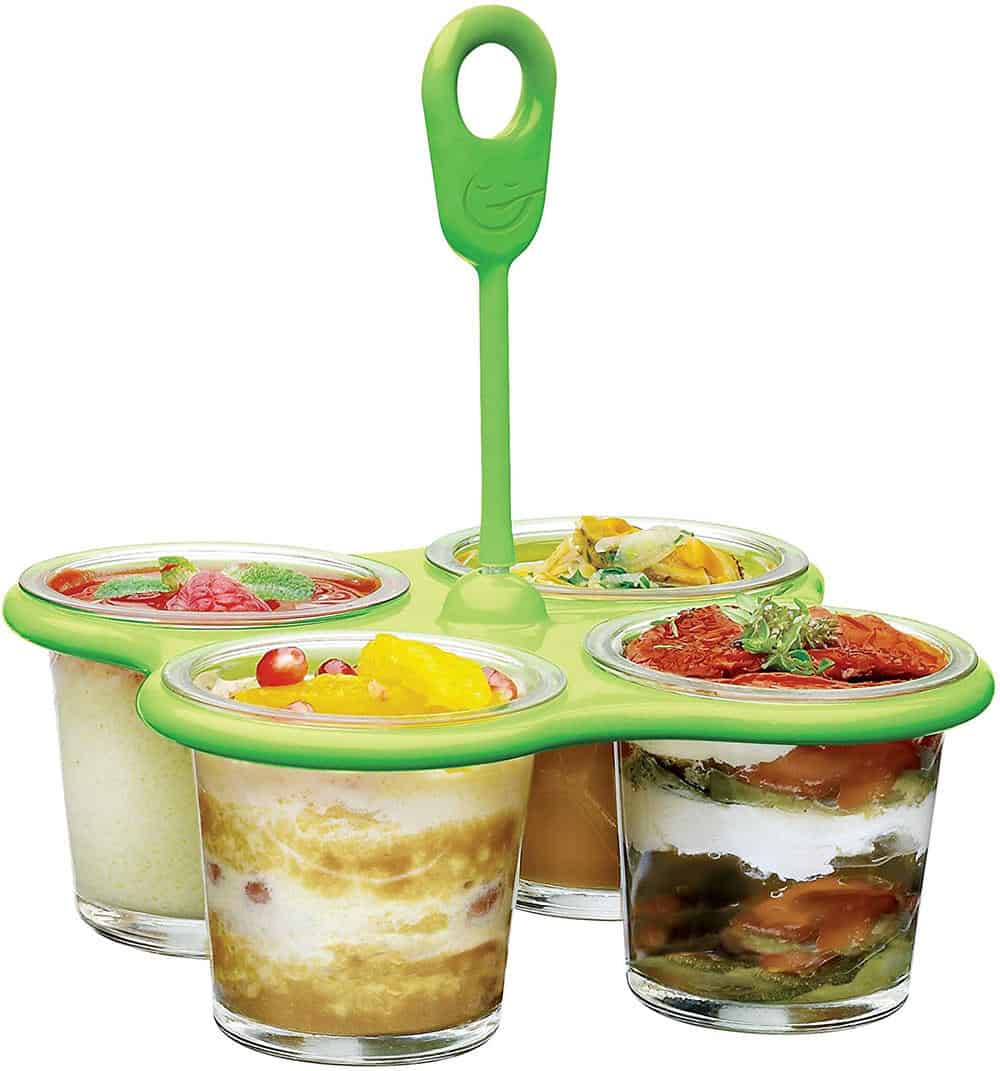 2 khay nấu lý tưởng để nấu các loại nước sốt hoặc nước xốt. Bộ lưu trữ được cấp bằng sáng chế siêu nhỏ gọn để phù hợp với mọi gian bếp. Các món ăn có thể được đặt trở lại trên đế để lưu trữ dễ dàng và thuận tiện trong bất kì đâu.