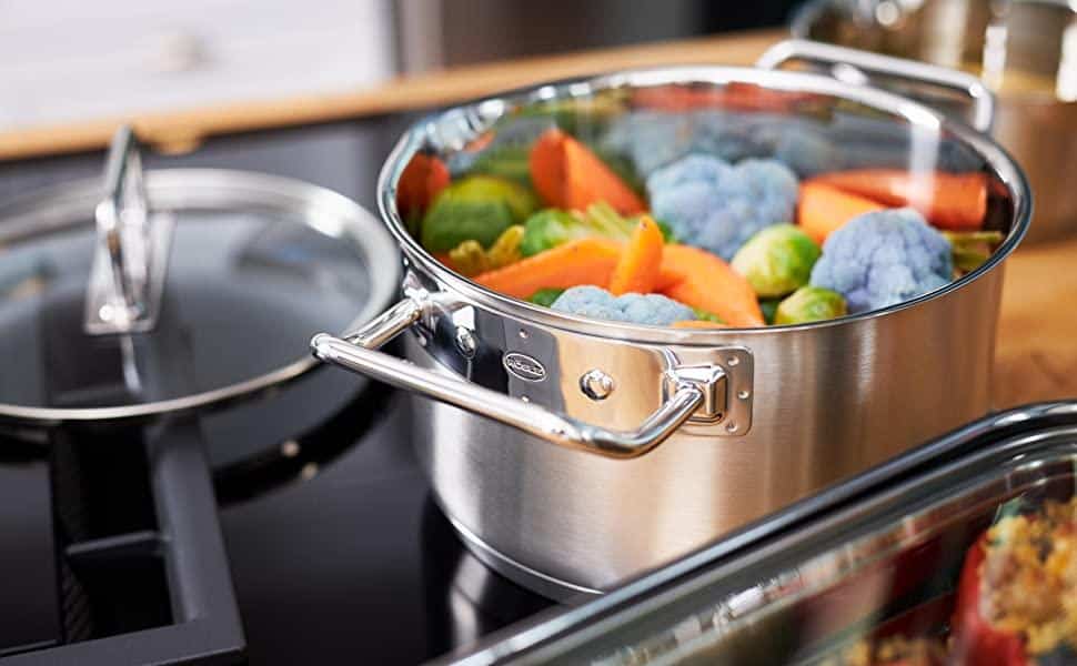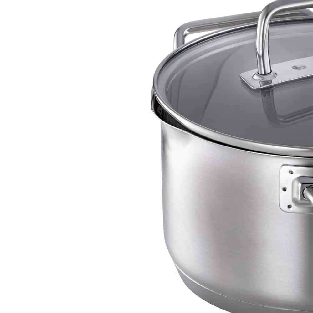 Nồi thấp Roesle Expertiso 91944 được làm bằng thép không gỉ 18/10 với đế đặc biệt với lõi nhôm 5 mm giúp dẫn nhiệt và phân phối nhiệt tối ưu. Bề mặt hoàn thiện có thẩm mỹ trang nhã với nắp kính cường lực tinh tế cho tầm nhìn rõ ràng bên trong của những chiếc nồi khi nấu nướng.