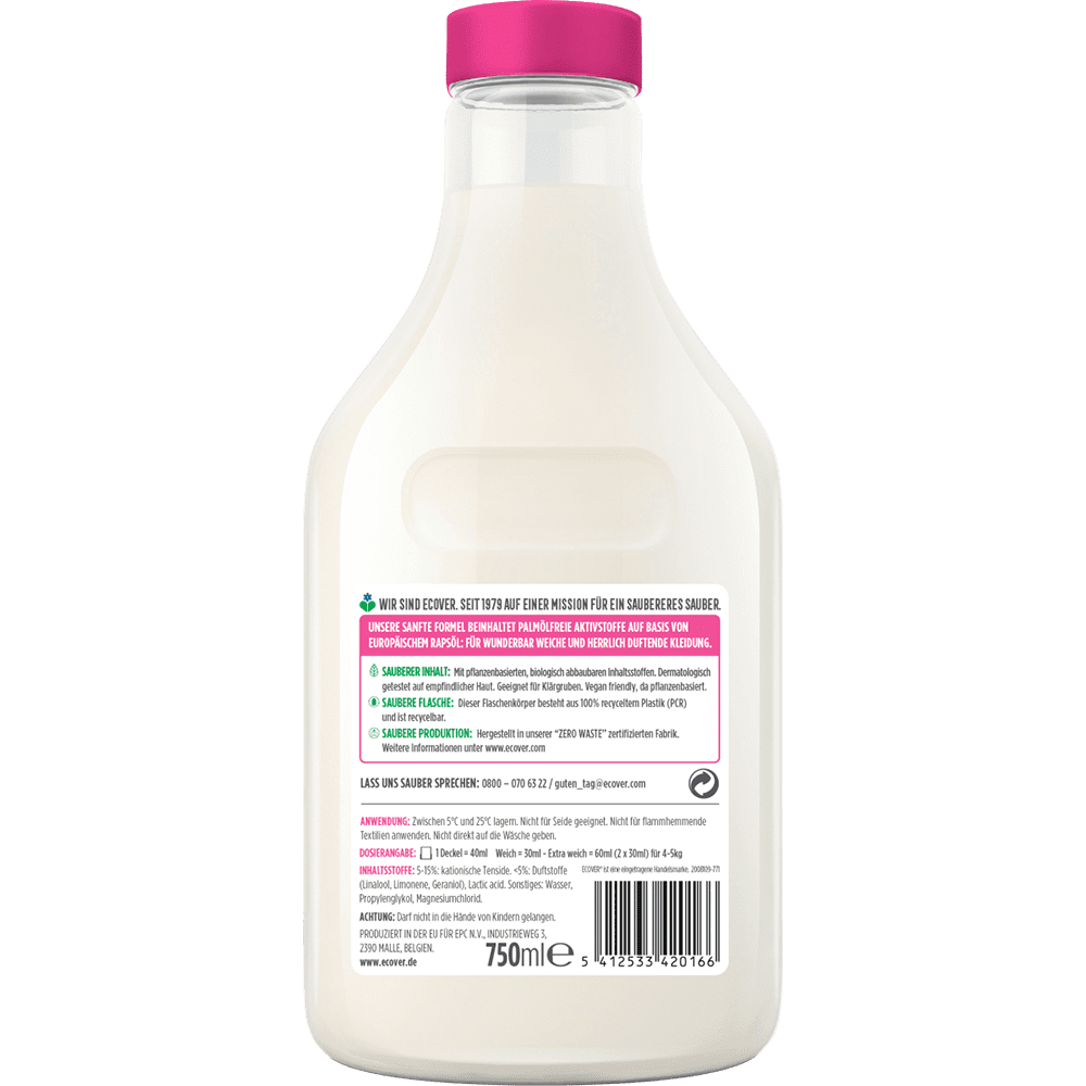 Ecover Apple Blossom & Almond Fabric Softener nhẹ nhàng và sảng khoái. Công thức chứa các thành phần hoạt tính không chứa dầu cọ mà tách chiết dựa trên dầu hạt cải dầu Châu Âu: cho quần áo mềm mại tuyệt vời và có hương thơm bền lâu. Nó đã được thử nghiệm da liễu trên da nhạy cảm và mẫn cảm vì nó có nguồn gốc thực vật.