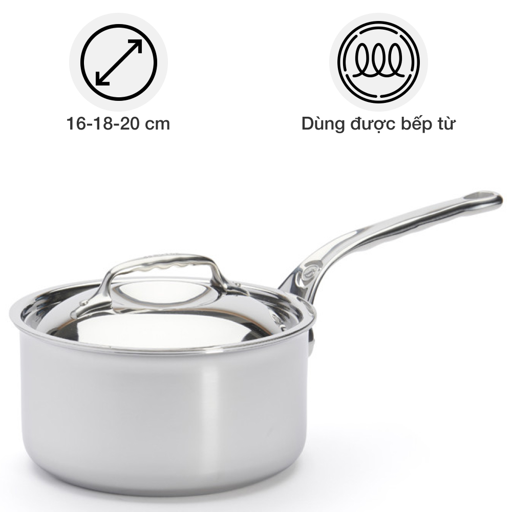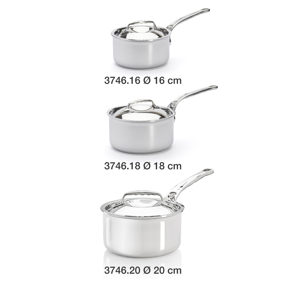 Quánh inox nắp inox De Buyer 3746 Affinity cũng được thiết kế với 3 kích thước cho phép linh hoạt lựa chọn, phù hợp với nhu cầu nấu nướng hàng ngày của bạn: