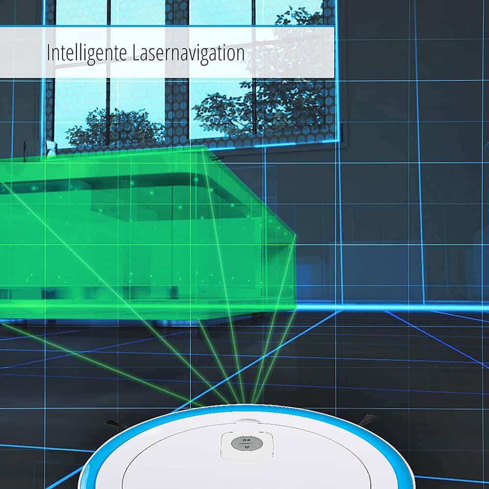 Robot Hút Bụi Medion MD 18861 sở hữu tính năng điều hướng laser, cho phép phát hiện chỗ có bụi bẩn để làm sạch nhanh chóng