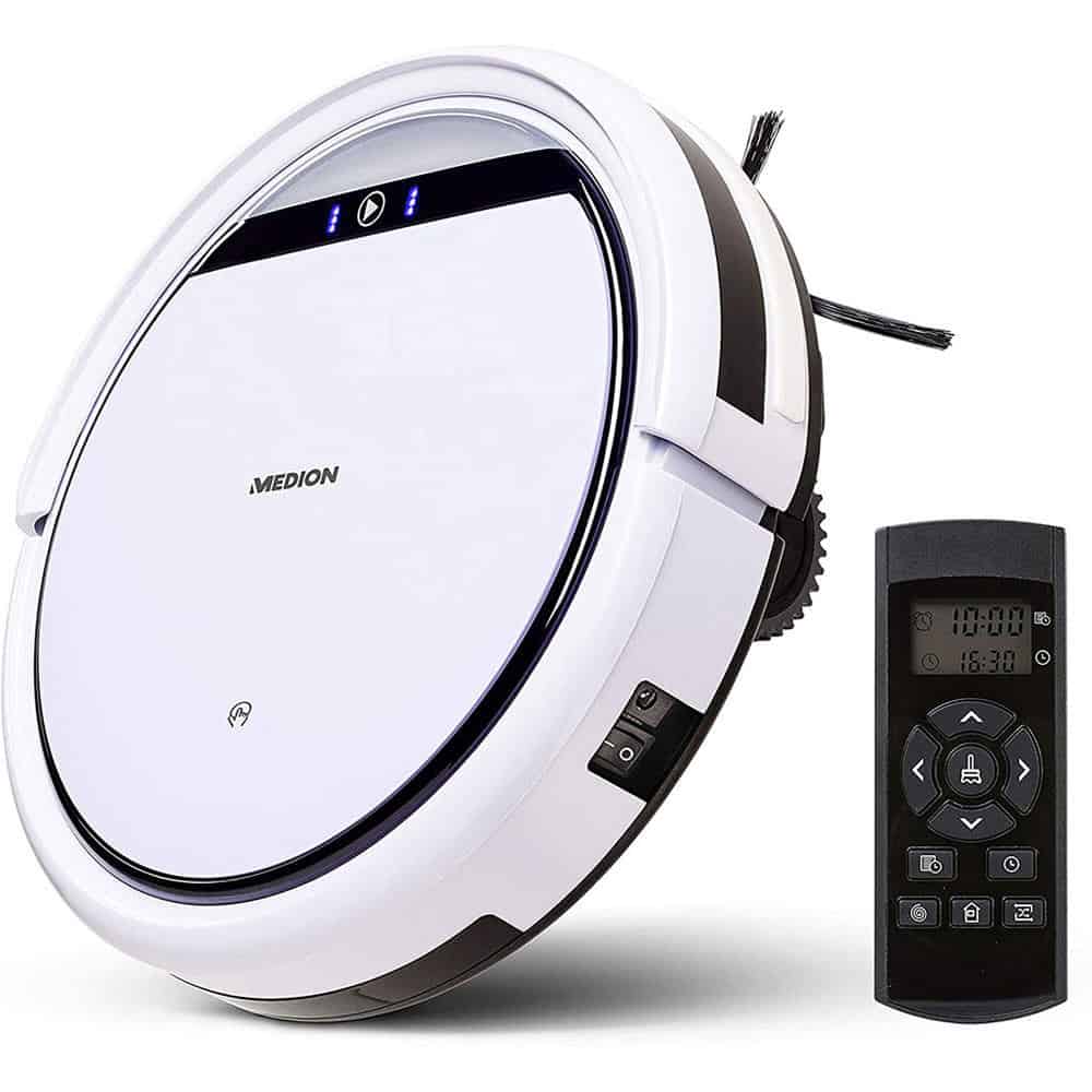 Phiên bản cao cấp của dòng máy Medion MD 18500. Nó sở hữu nhiều tính năng ưu việt so với các sản phẩm robot hút bụi thông minh khác: tự dộng sạc, công suất lớn, lập trình thông minh, đặc biệt không ngã cầu thang… Với kiểu dáng độc đáo khi được làm từ nhựa cao cấp bền bỉ với phần kết cấu dễ dàng để vệ sinh sau mỗi lần sử dụng. Sản phẩm hoạt động hiệu quả trên nhiều loại sàn như: gỗ, đá hoa, thảm, sàn gạch, trên ghế sofa.