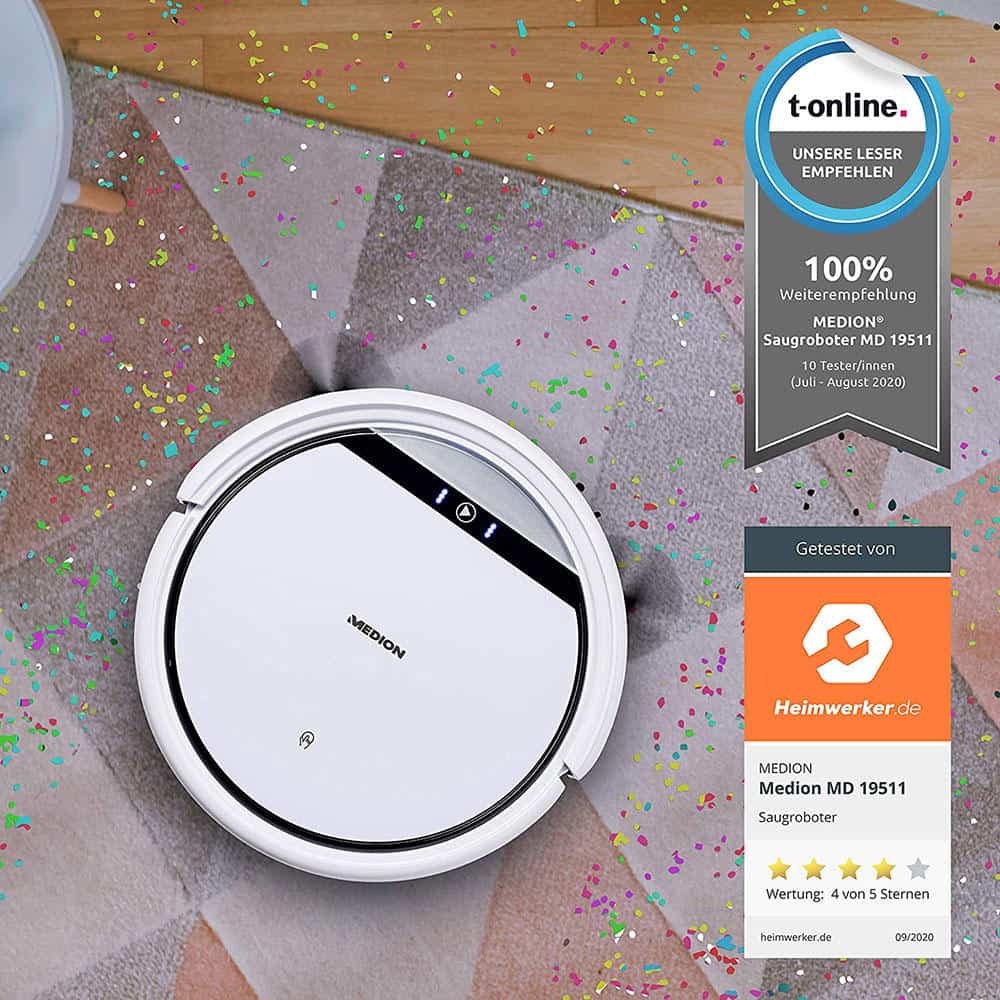 Robot hút bụi hoạt động được lập trình thông minh. Trong khi nhiều robot gia dụng thông thường làm sạch sàn nhà ở khắp mọi nơi, thì robot hút bụi Medion MD 19511 hoạt động theo một hệ thống điều hướng thông minh. Robot hút bụi chia phòng thành các khu vực riêng lẻ, nó di chuyển theo các làn đường. Bằng cách này, bụi, chất bẩn và tóc sẽ được loại bỏ hiệu quả hơn.