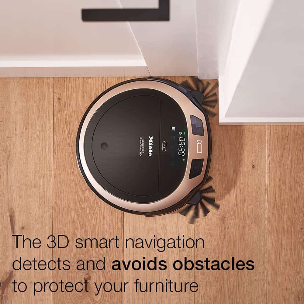 Miele Scout RX3 Home Vision HD được trang bị 2 chiếc camera phía trước kết hợp với các thuật toán thông minh giúp nhận dạng vật thể ba chiều với độ chính xác cao. Thông qua đó Miele Scout RX3 Home Vision HD sẽ tự động xác định khoảng cách đến các chướng ngại vật và điều hướng an toàn xung quanh chúng. Ngay cả những cấu trúc không gian phức tạp cũng không thành vấn đề đối với Scout với điều hướng thông minh 3D.