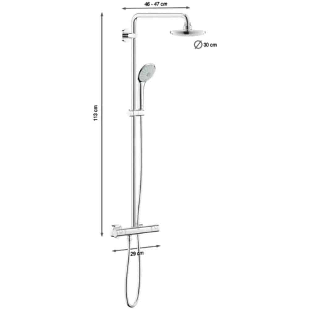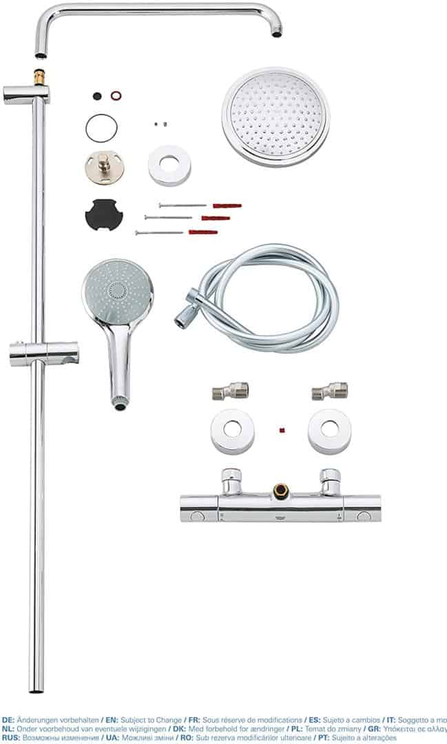 Trọn bộ Sen Vòi Grohe Euphoria 272960001 bao gồm thân sen cây, bát sen 2 chế độ, sen tắm nóng lạnh, bát sen massage, bát sen trần được tích hợp công nghệ trộn khí vào nước với thiết kế hiện đại và vô cùng tinh tế. Bề mặt sản phẩm mạ Crom / Niken sáng bóng, bền bỉ giúp sản phẩm luôn sạch sẽ, không bị bong tróc hay trầy xước trong thời gian dài sử dụng.