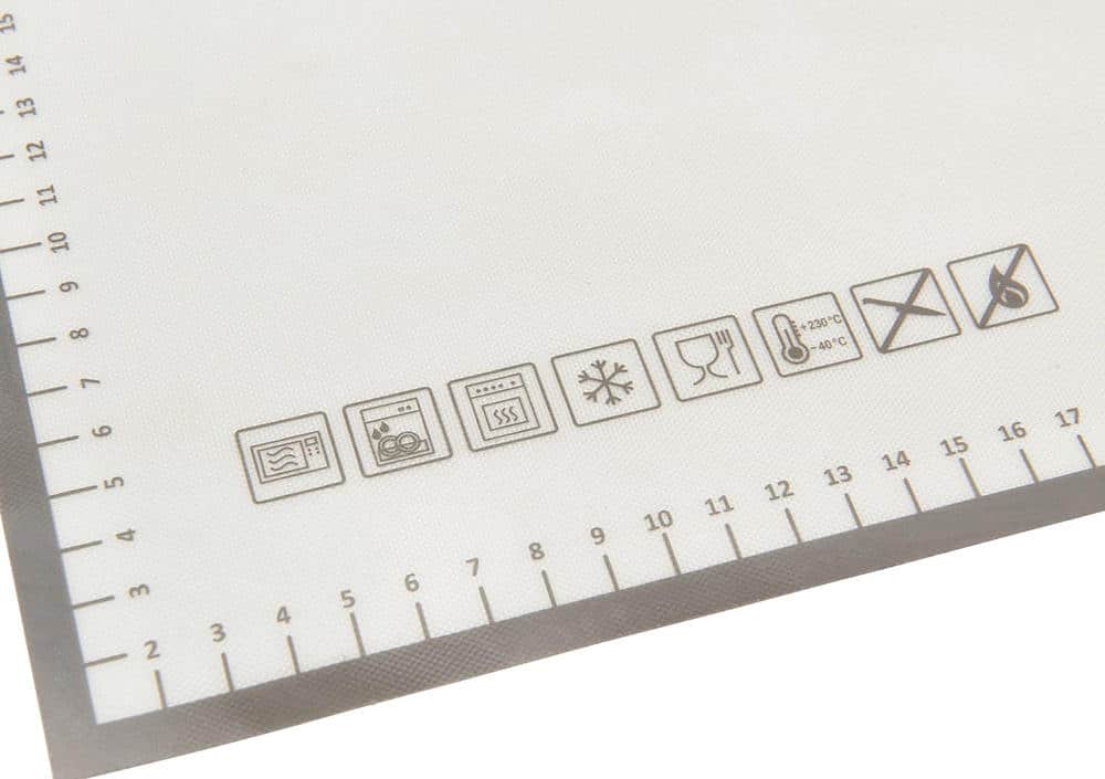 Để dễ dàng phân chia các phần bột, các kích thước quan trọng nhất của khuôn nướng được đưa ra để thay đổi trên tấm lót bánh Roesle có khả năng chịu nhiệt rất cao với khả năng chịu nhiệt độ từ 40 ° C đến 220 ° C