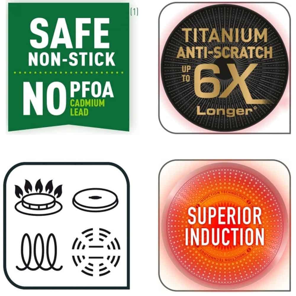 Với công nghệ đạt tiêu chuẩn Châu Âu đảm bảo 100% các sản phẩm chảo không dính của Tefal đạt chứng nhận về an toàn khi đáp ứng được các quy định về sản phẩm không chứa các chất có hại cho sức khỏe như Chì(PB), PFOA, Cadmium(Cd). Chảo Tefal Excellence Schmorpfanne G26932 – 24cm cũng là sản phẩm đạt tiêu chuẩn đó, người tiêu dùng hoàn toàn yên tâm khi sử dụng sản, đảm bảo an toàn sức khỏe khi chế biến thức ăn.