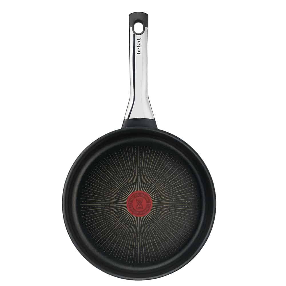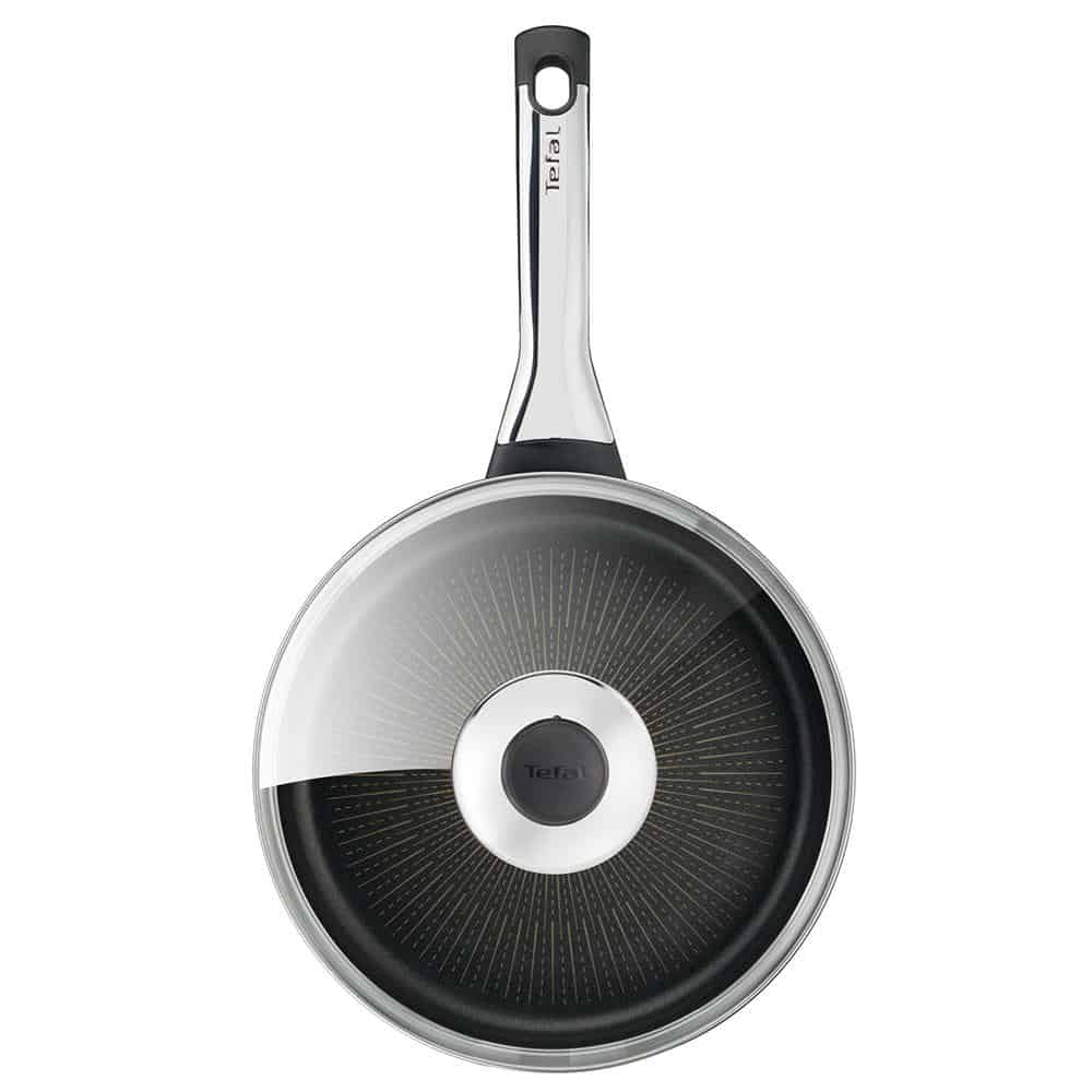 Cùng với công nghệ điểm nhiệt Thermo-Spot độc đáo của Tefal sẽ giúp việc chế biến đồ ăn sẽ trở nên dễ dàng khi điểm chỉ báo nhiệt độ trong lòng chảo sẽ đổi màu (màu đỏ đồng) khi chảo đạt đến nhiệt độ chiên tối ưu. Với thiết kế lòng chảo sâu đặc biệt giúp cho việc chế biến các món ăn thoải mái, thuận tiện hơn.