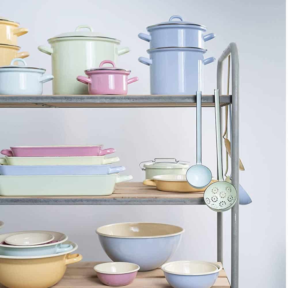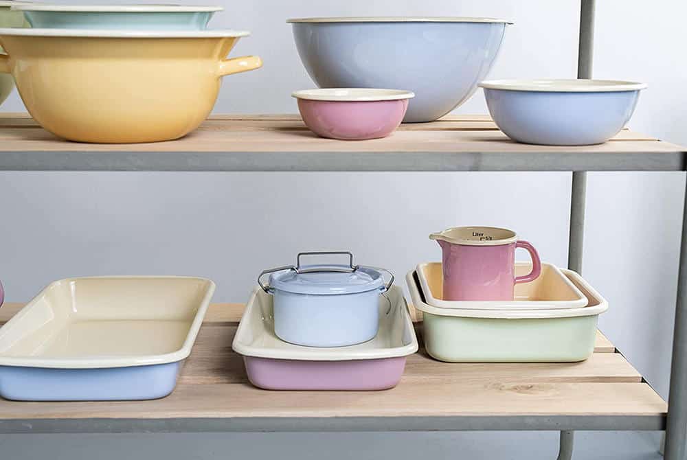 - Tay cầm tráng men nóng nhanh do lõi được làm bằng sắt. Dùng giá để thố được khuyến khích
